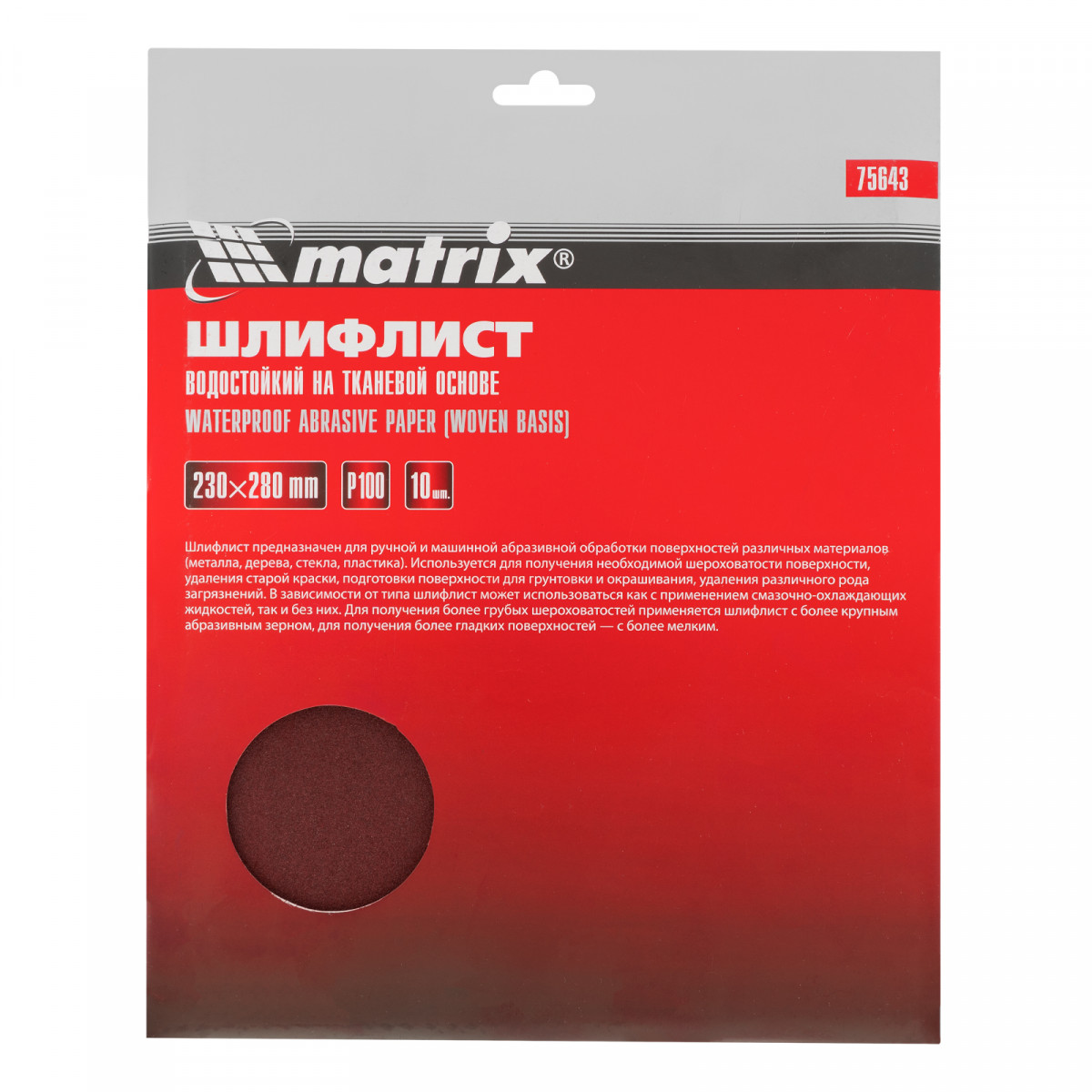 Шлифлист на тканевой основе, P 100, 230 х 280 мм, 10 шт, водостойкий Matrix