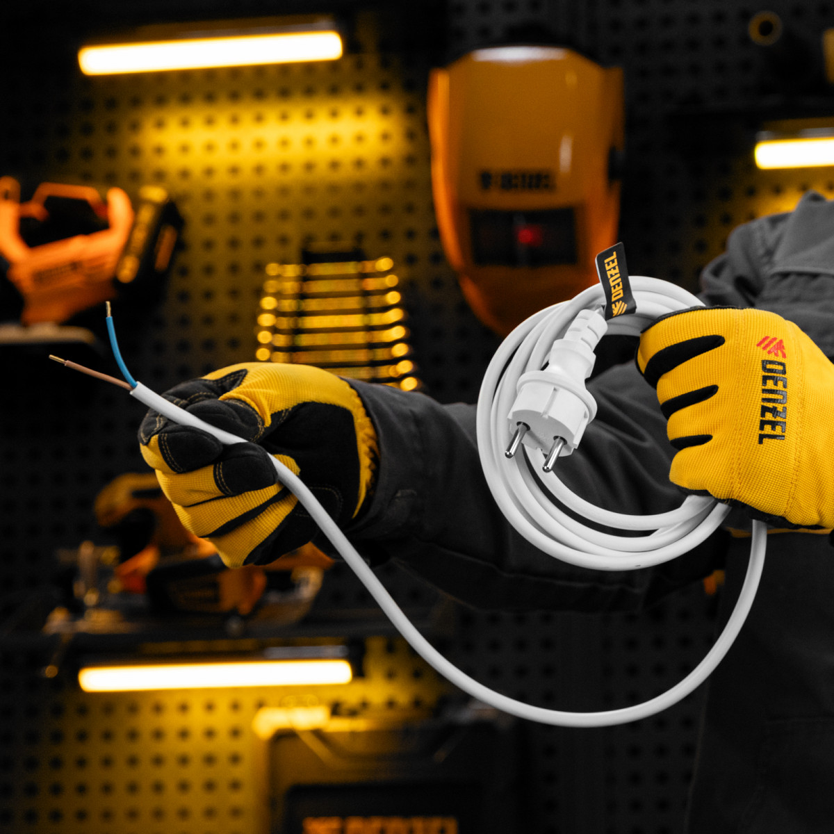 Шнур сетевой Energy Series, ПВС, 3 м, 2 x 1,5 мм, с неразборной вилкой, белый, Denzel