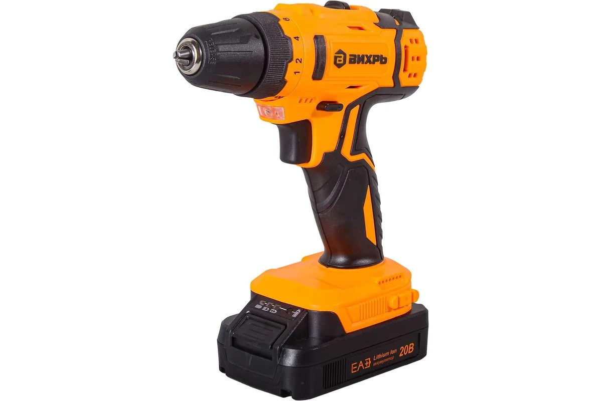 Шуруповерт Вихрь аккумуляторный ДА-20Л-2КА с набором оснастки 65 предметов