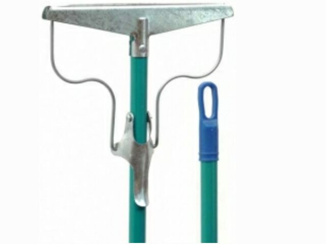 Металлический зажим обеспечивает надежное крепление швабры.