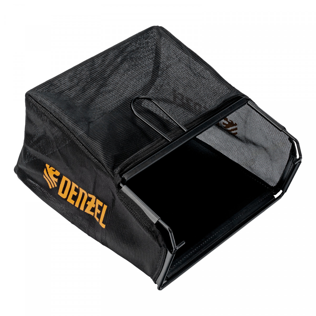- Вместительный травосборник объемом 30 л — сетчатая ткань позволяет легко отслеживать количество собранной травы и мусора и легко очищается.