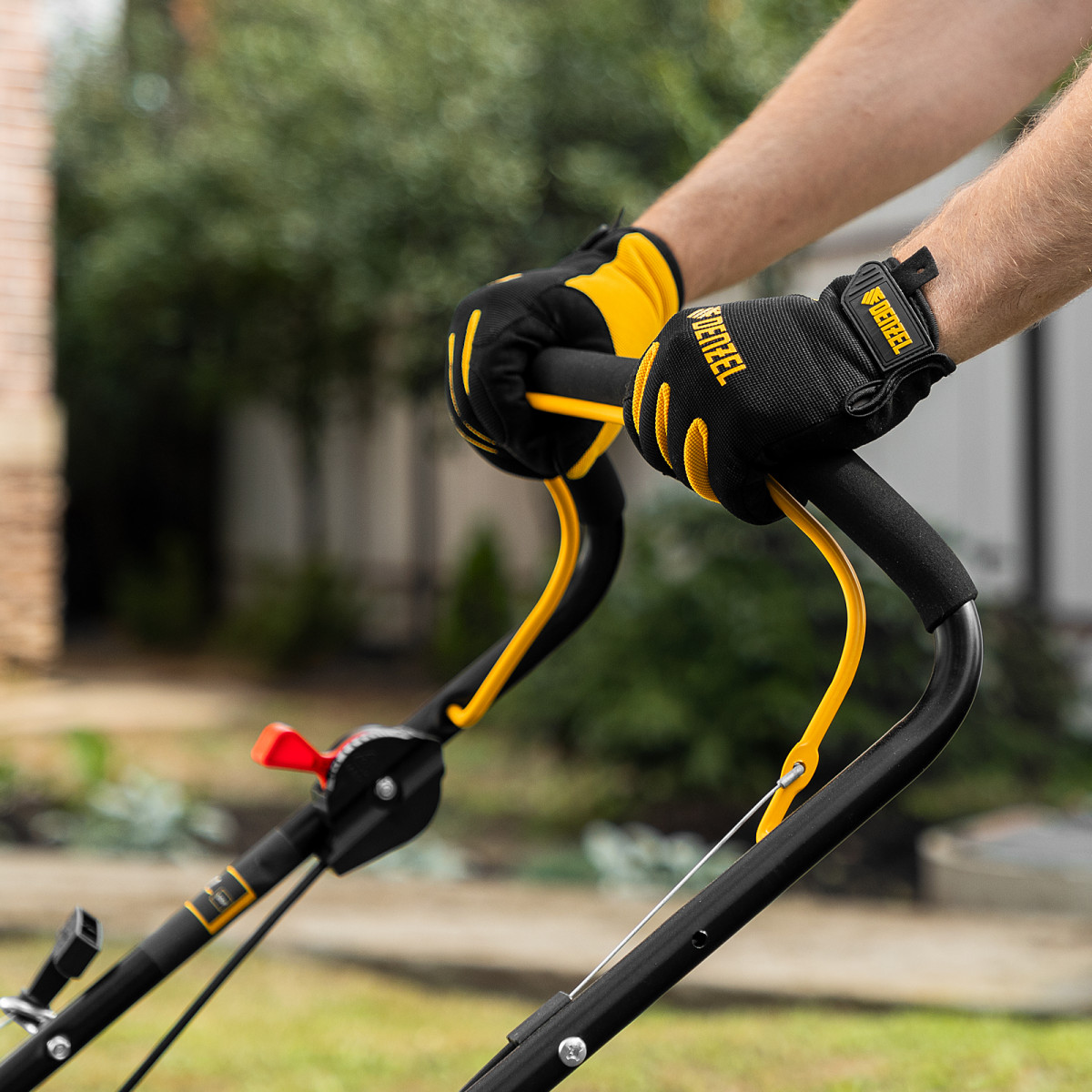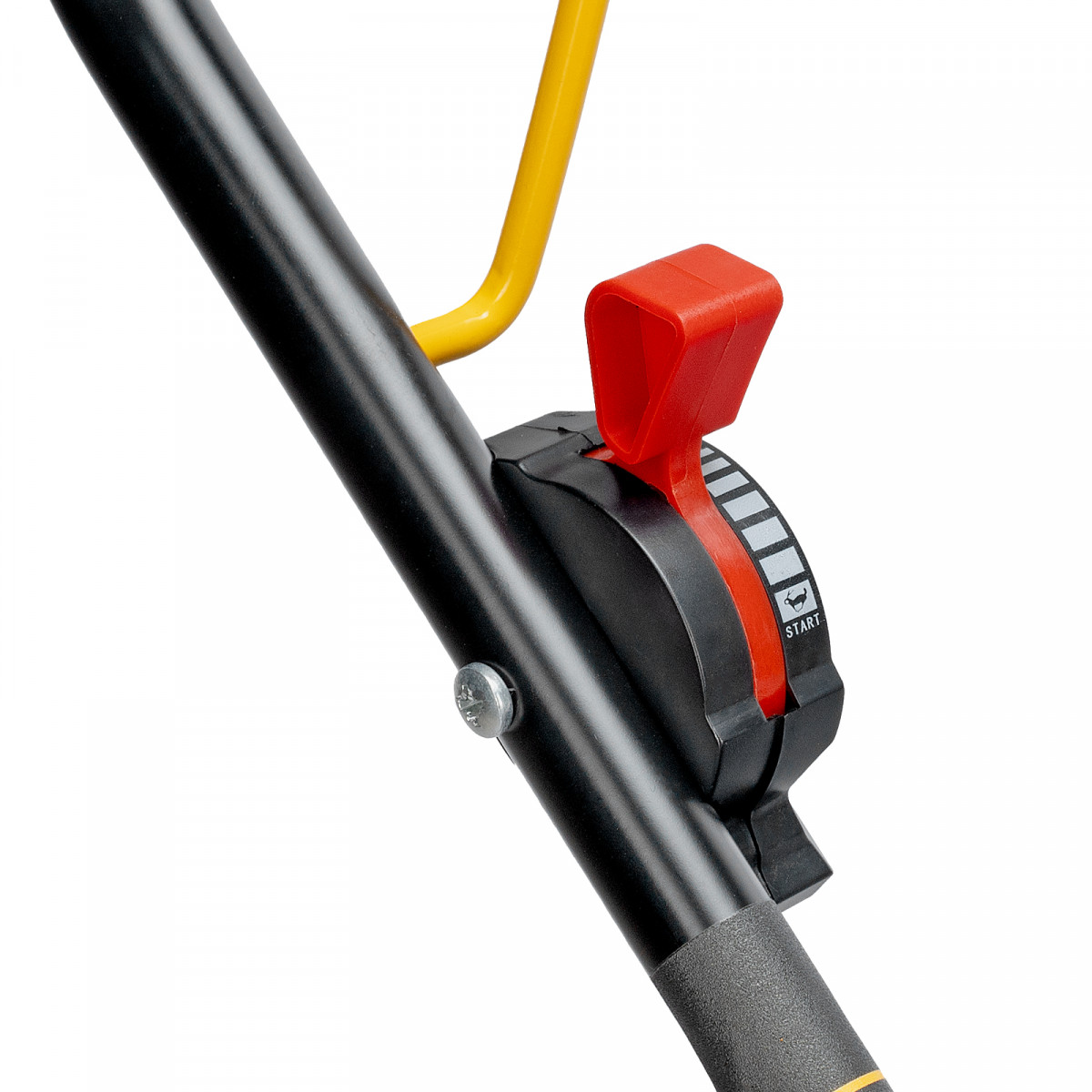- Оптимальный темп работы — регулировка оборотов двигателя позволяет замедлять или увеличивать скорость обработки территории в зависимости от поставленных задач.