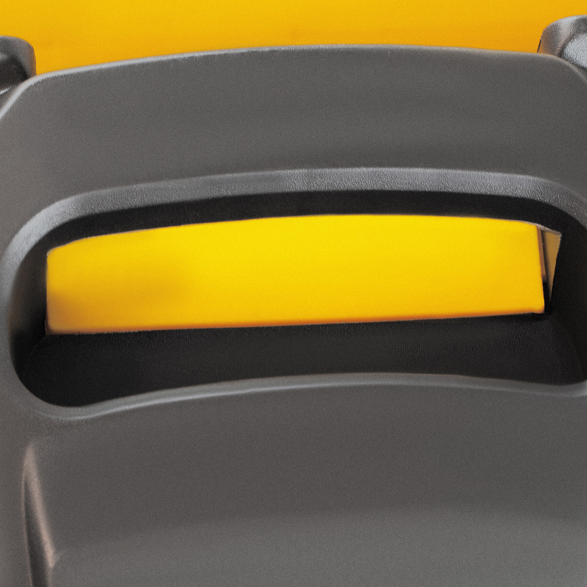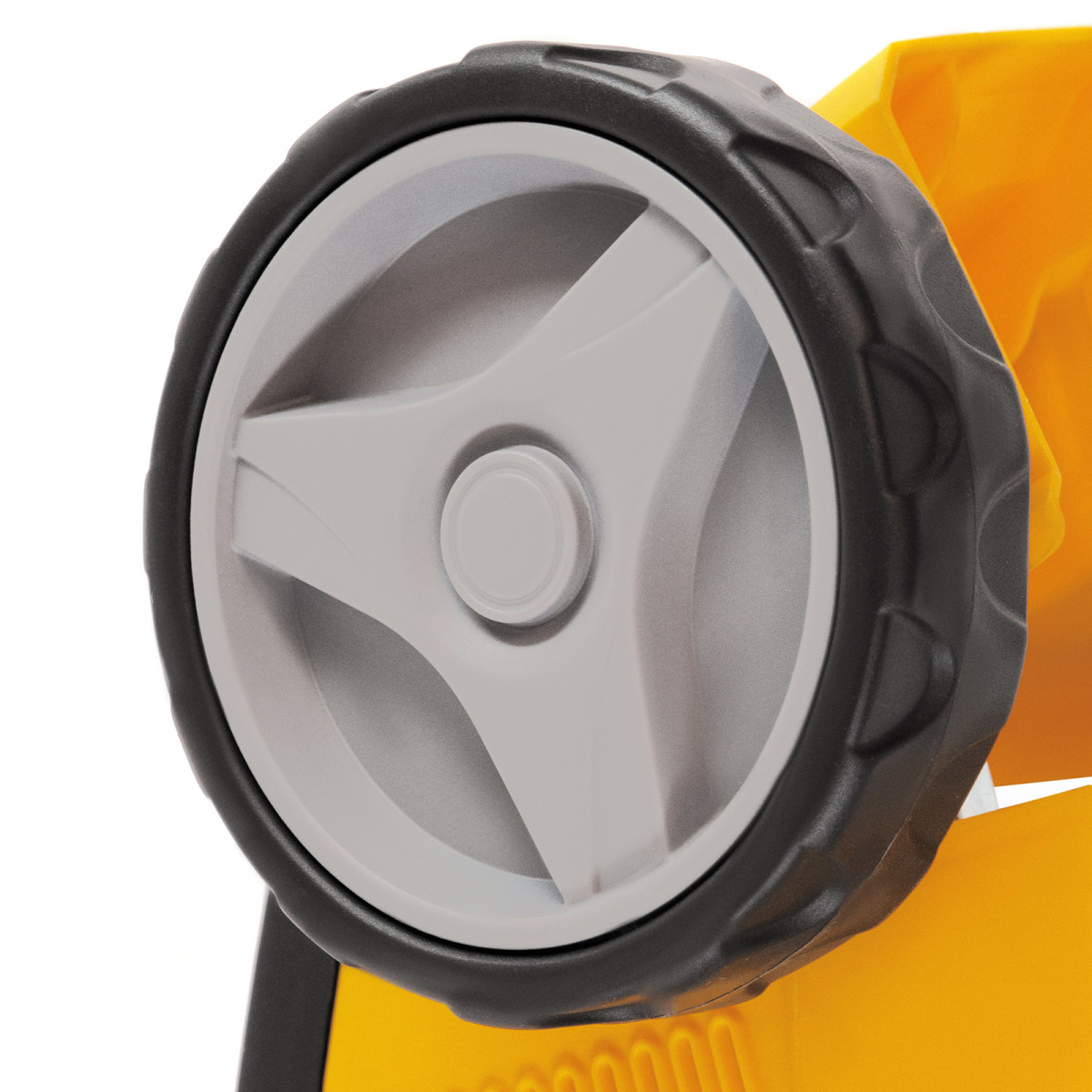 • Объемный травосборник на 40 л просто опустошается, не повреждается благодаря сочетанию твердого каркаса и мягкой ткани, а также легко очищается.