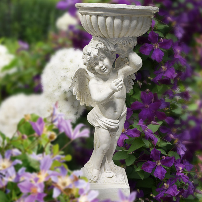 Скульптура садовая Ангел с чашей на голове