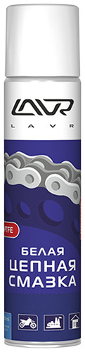 Белая цепная смазка LAVR – лучшее средство для обработки приводных цепей мото- и велотехники, а также цепей в производстве, на складе и в быту.