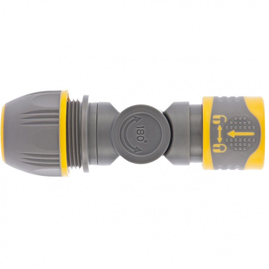 - Шарнирный механизм — коннектор можно повернуть на 180°, избежав перекручивания и перегибания шланга.