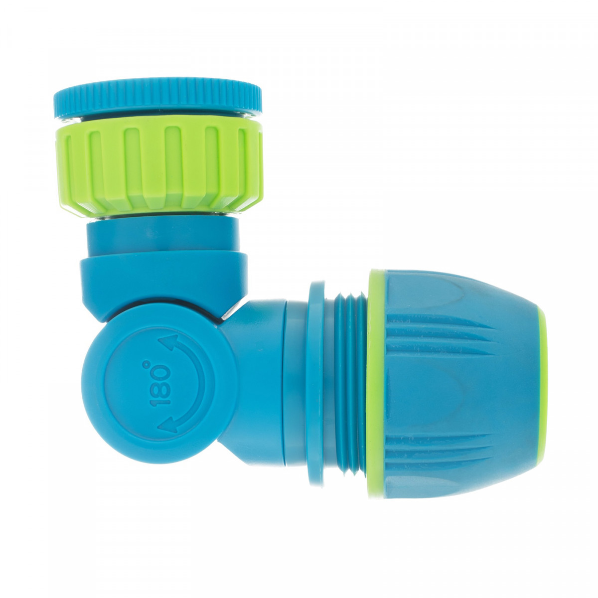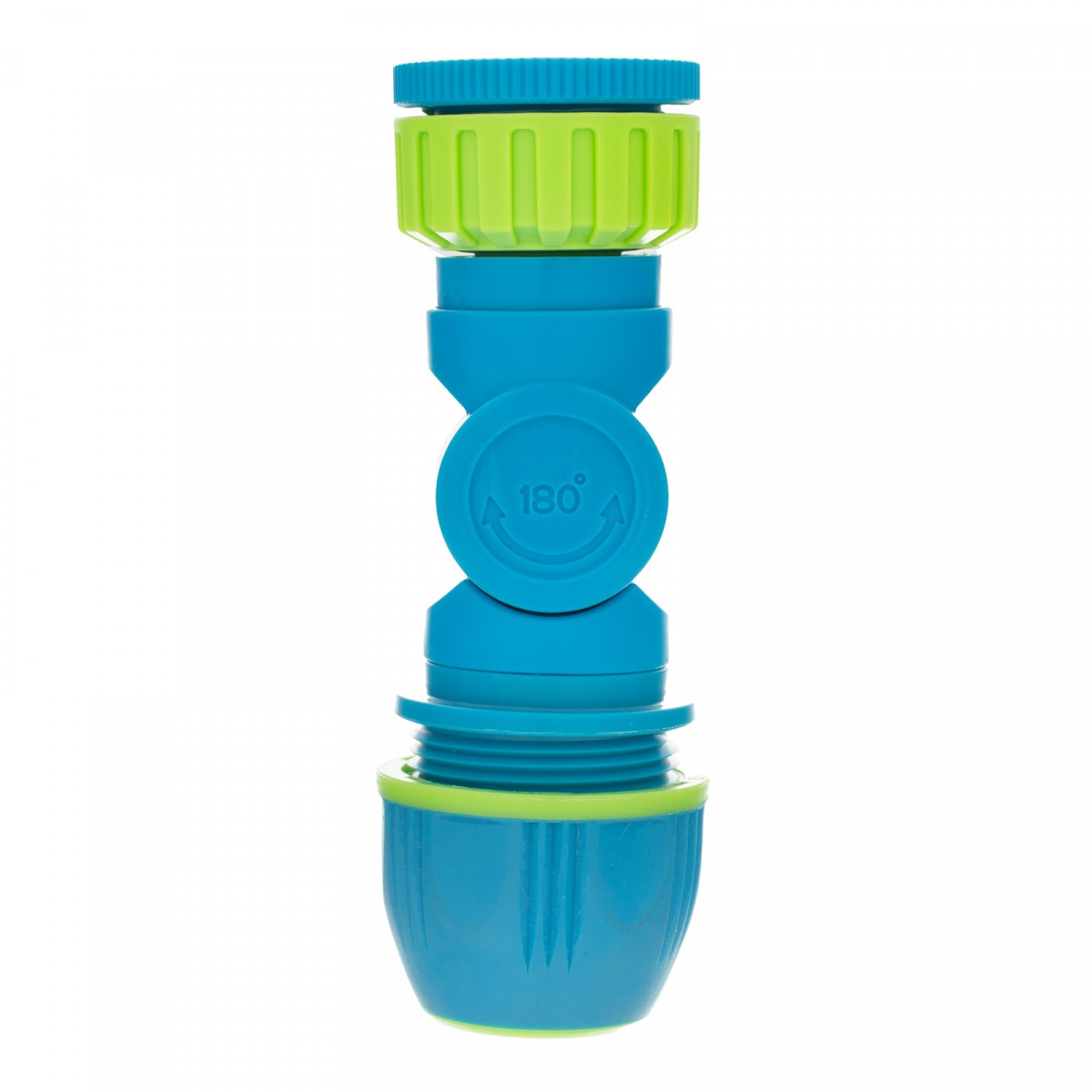 • Функциональность — шарнирный механизм вращается на 180°, что позволяет менять направление полива без риска повреждения шланга.