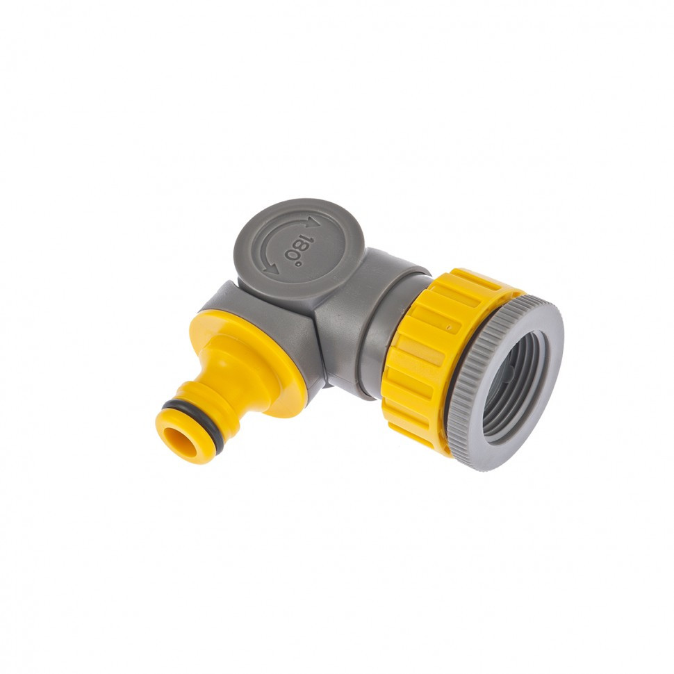 • Шарнирный механизм — соединитель поворачивается на 180 градусов, поэтому шланг не деформируется при изменении направления полива.