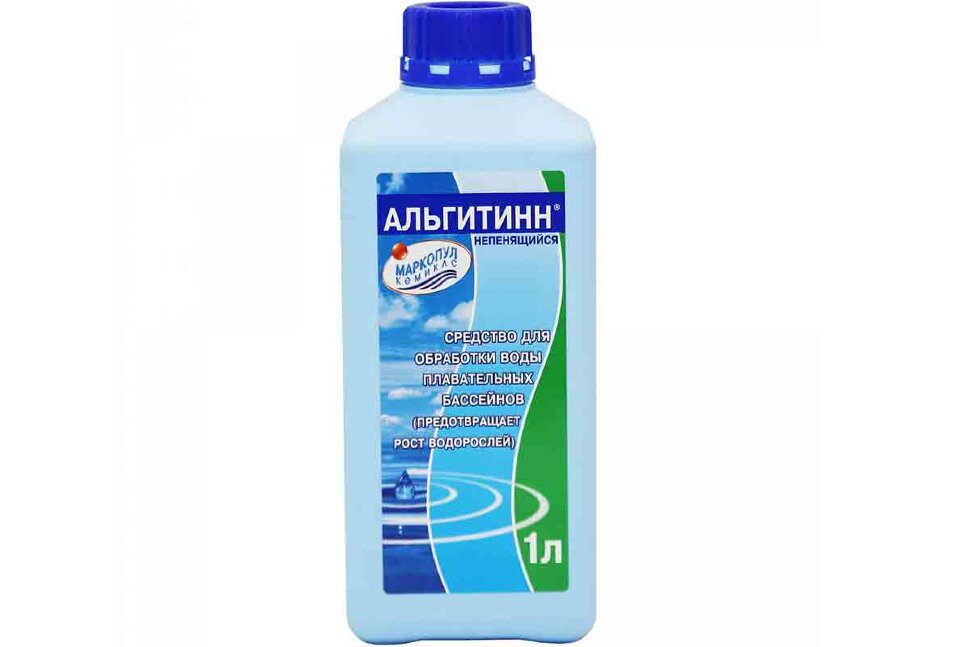 АЛЬГИТИНН НЕПЕНЯЩИЙСЯ - средство для борьбы с водорослями в плавательных бассейнах, является высокоэффективным решением против цветения воды и появления водорослей. Поставляется в удобной литровой емкости. Альгицид, входящий в состав АЛЬГИТИННа, обладает долгосрочным действием, эффективно ликвидирует споры бурого планктона и мешает развитию процесса обмена веществ у водорослей, что приводит к их гибели и предотвращает появление в дальнейшем. Препарат является рН нейтральным, не содержит хлора и тяжелых металлов. Не пенится - подходит для использования в любых типах бассейнов в том числе СПА. Рабочий раствор препарата (на 100 мл Альгитинна - 600 мл воды) может также применяться для антигрибковой обработки зоны при бассейне: пластиковых и резиновых дорожек, настилов, кафельных кромок и т.п. При использовании средства требуется перерыв в работе бассейна не менее 12 часов.