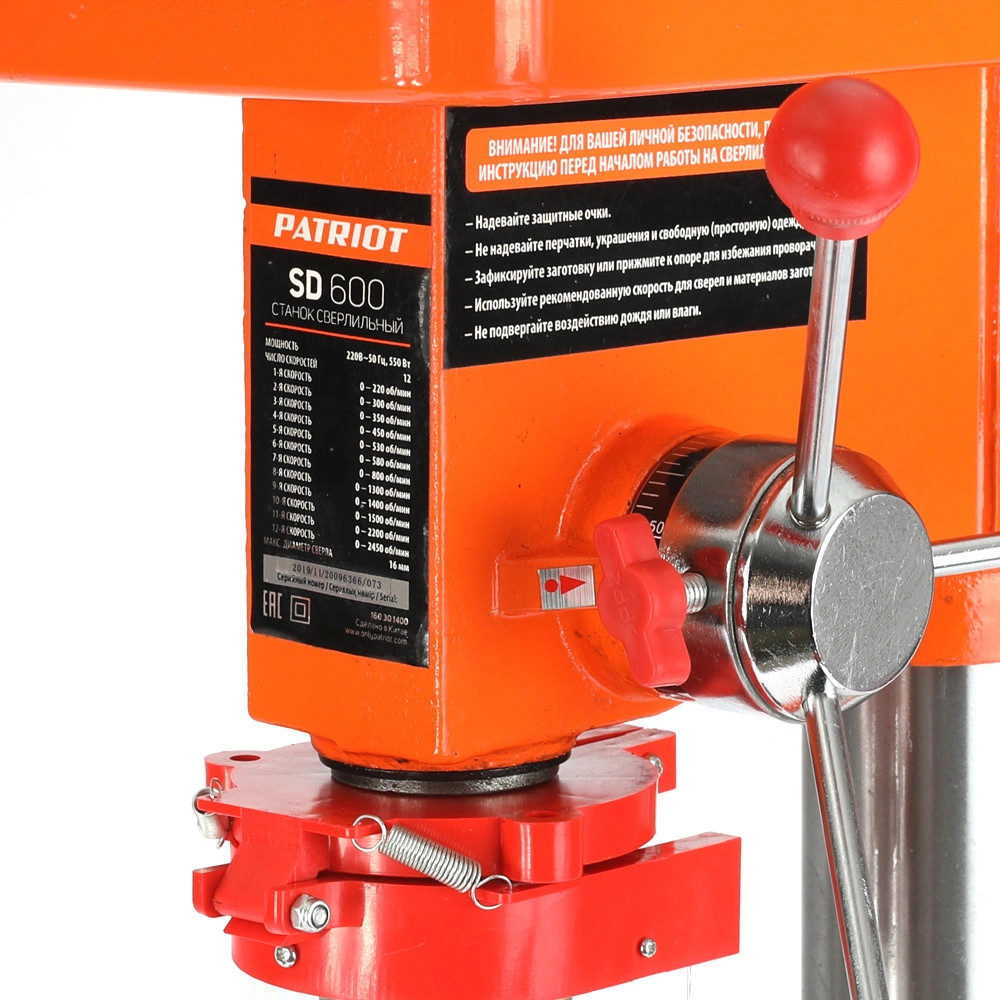 Сверлильный станок PATRIOT SD 600 160301400 используется для получения отверстий в заготовках из дерева или металла.