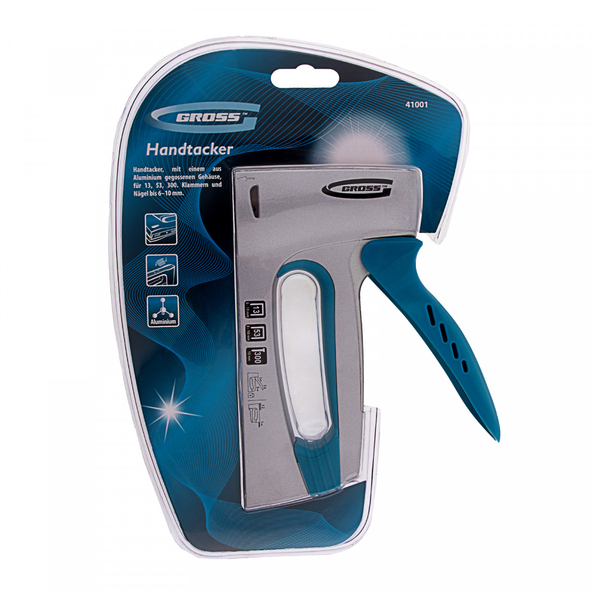 Степлер мебельный, алюминиевый корпус, тип скобы: 13, 53, 300, 6-10 мм Gross