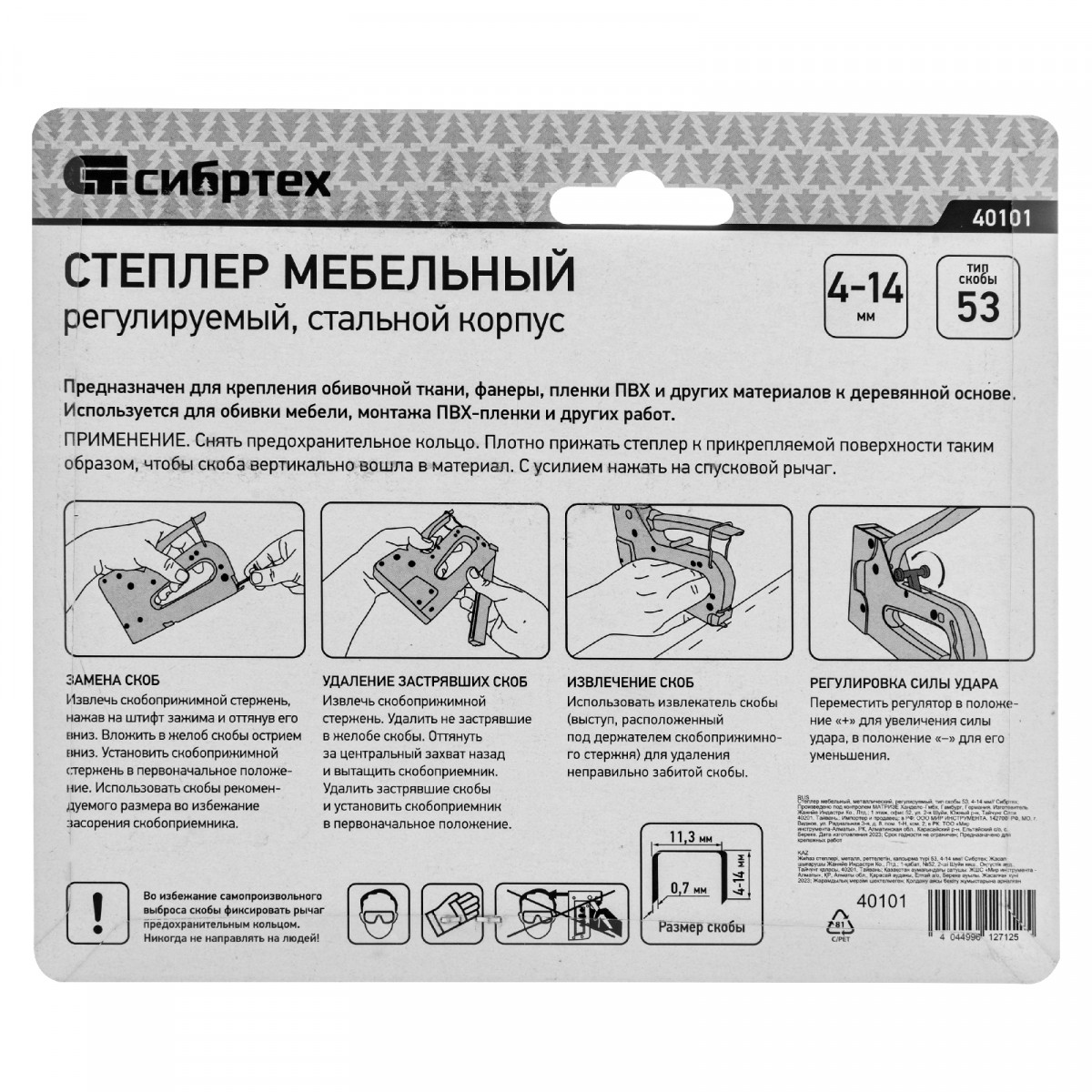 Степлер мебельный, металлический, регулируемый, тип скобы: 53, 4-14 мм Сибртех
