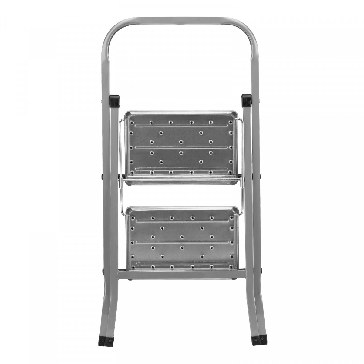 - Прочность — рама и ступени изготовлены из стали, поэтому стремянка выдерживает нагрузку 120 кг.