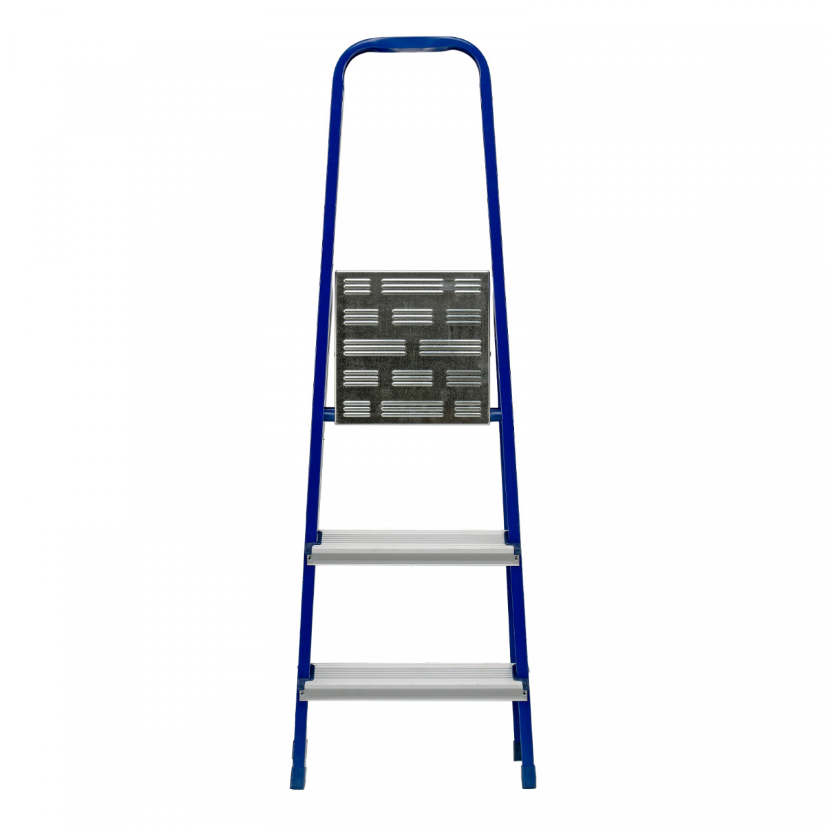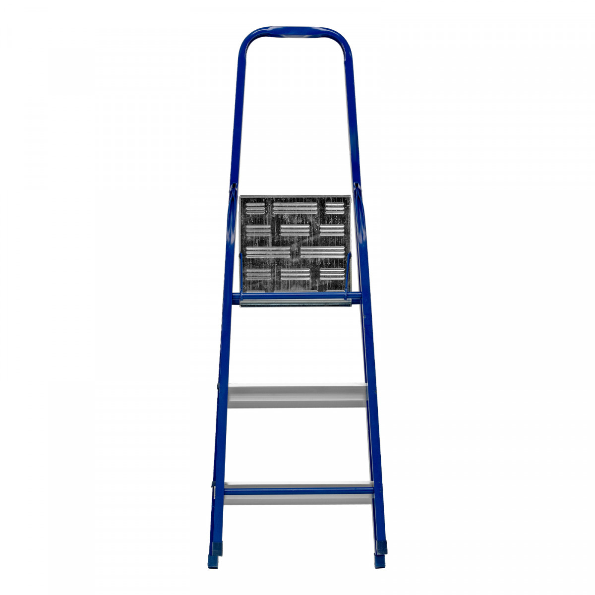 • Надежная конструкция — рама изготовлена из профилированной стали, стальная верхняя площадка с зацепами прочно фиксирует стремянку в рабочем положении.