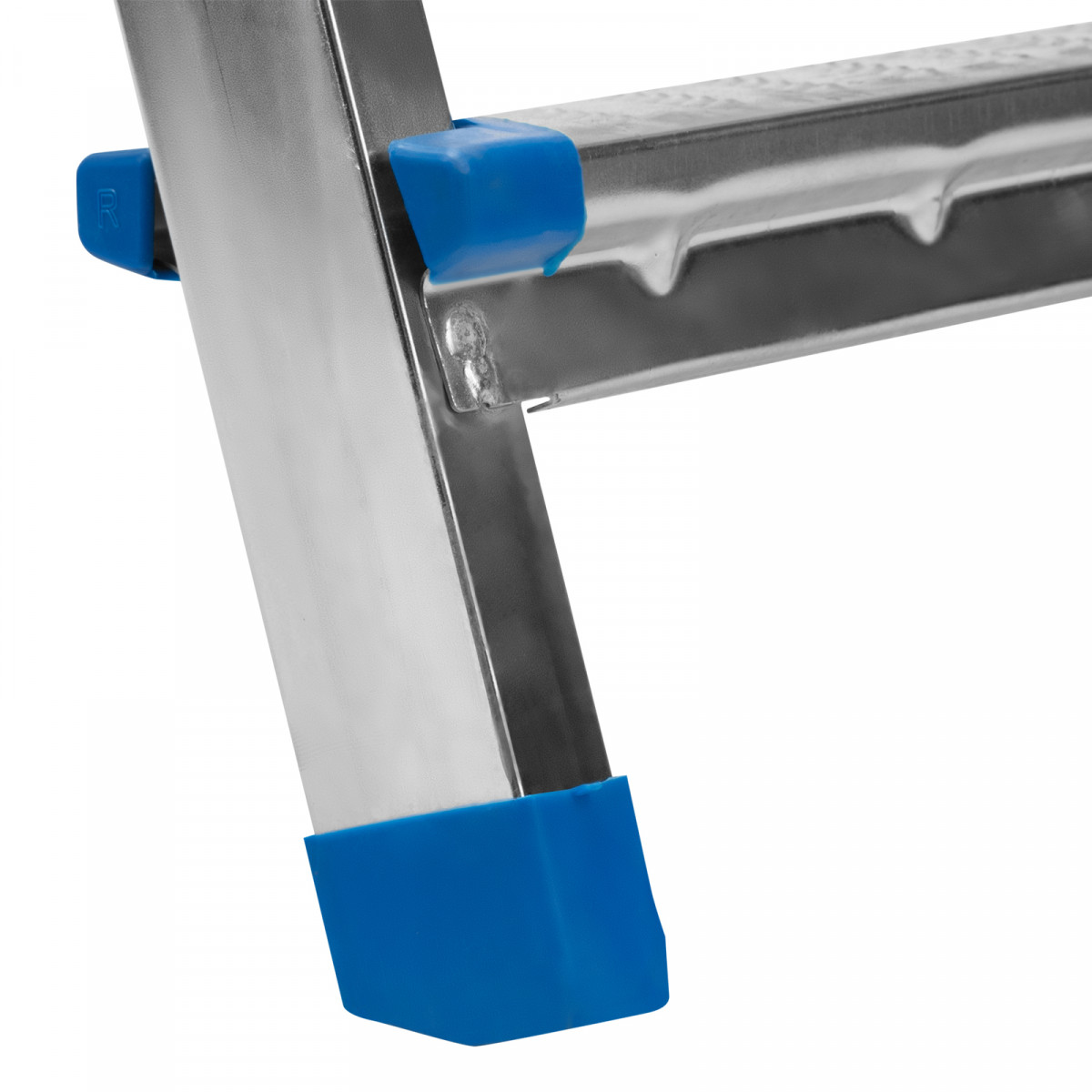 - Простая установка — на верхней площадке предусмотрены специальные зацепы для фиксации стремянки в разложенном состоянии.