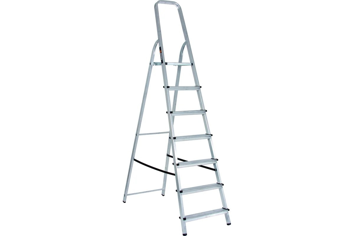 Стремянка алюминиевая широко применяется в быту. Корпус изготовлен из алюминия, что облегчает транспортировку. Односекционная модель с 6-ю широкими ступенями с рифленой поверхностью и рабочей площадкой. Чтобы стремянка не скользила, на опорах оборудованы заглушки. Также есть дуга безопасности. В сложенном состоянии модель очень компактна и занимает мало места.Прочные страховочные ленты предотвращают выход стремянки из рабочего положения.Благодаря наличию высокой дуги пользователь может безопасно выполнять работу.В сложенном состоянии лестница занимает мало места, что удобно при хранении.