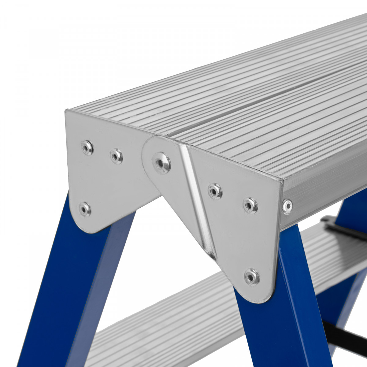 - Пластиковые заглушки на опорах — стремянка не скользит и не царапает напольное покрытие.