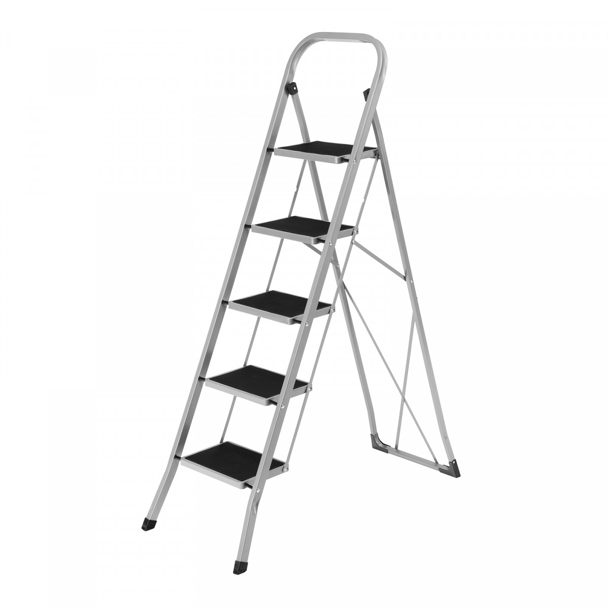 - Удобное хранение — за счет толщины в сложенном виде 4,5 см стремянка не занимает много места.
