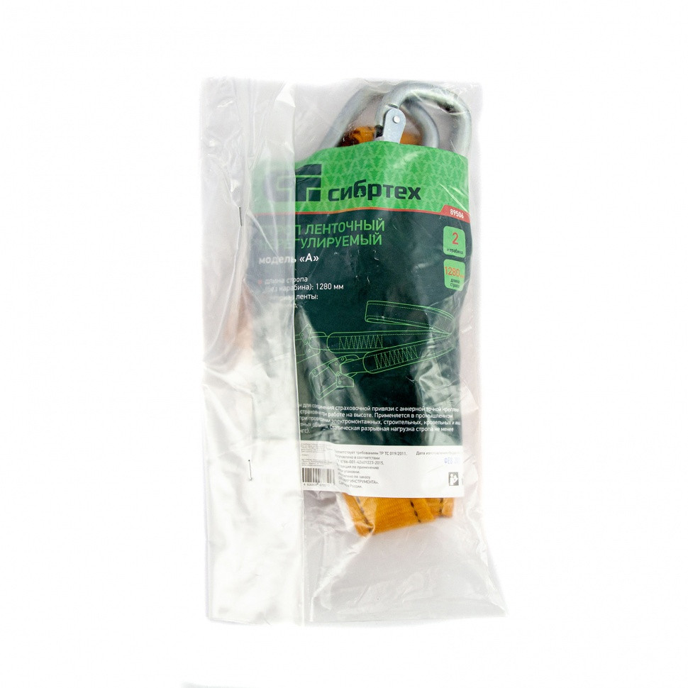 Ленточный нерегулируемый строп Сибртех 89506, модель «А» с 2 карабинами, предназначен для соединения удерживающей (страховочной) привязи с анкерной точкой крепления. Позволяет предотвратить падение работника с высоты. Используется в ходе строительных, монтажных и других высотных работ.