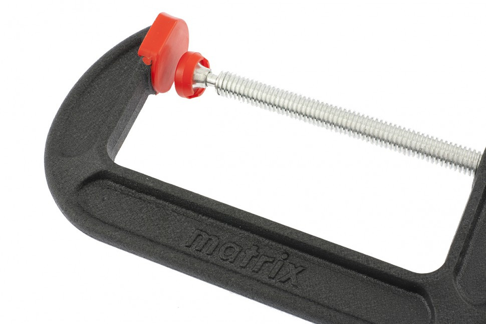 Струбцина G-образная Matrix 20606 с максимальной шириной зажима 150 мм используется для фиксации заготовок или закрепления их на верстаке или станке. Позволяет склеивать детали, а также сверлить их, шлифовать, опиливать и проводить другие работы. Подходит для использования во время сварки. Стальной винт и рама из высокопрочного чугуна выдерживают значительные нагрузки. Винт с трапециевидной резьбой обеспечивает надежную фиксацию предметов. Струбцина применяется в слесарном и столярном деле, а также в домашнем хозяйстве.