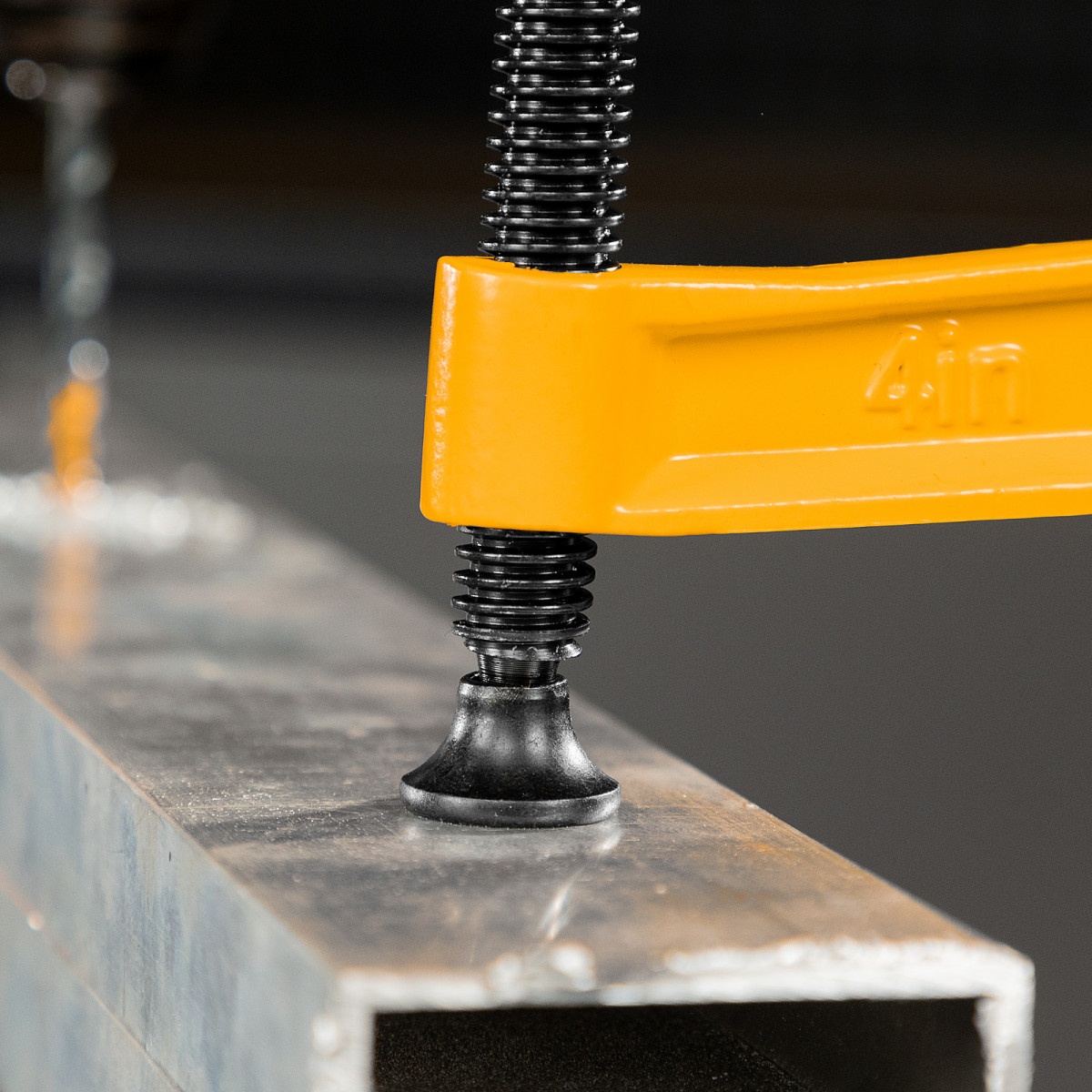 G-образная струбцина Denzel 20643 с максимальной шириной зажима 100 мм используется для фиксации заготовок или закрепления их на верстаке, станке или между собой. Позволяет склеивать детали, а также сверлить их, шлифовать, опиливать и проводить другие работы. Может использоваться во время выполнения сварочных работ. Винт с трапециевидной резьбой обеспечивает надежную фиксацию предметов. Струбцина применяется в слесарном и столярном деле, будет полезна также домашнем хозяйстве.