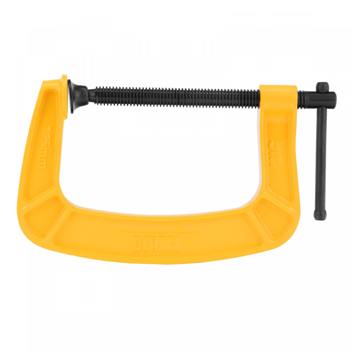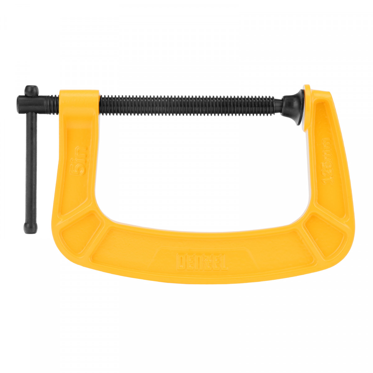 Струбцина Denzel 125 мм: усиленная рама из чугуна для высоких нагрузок и долговечности.