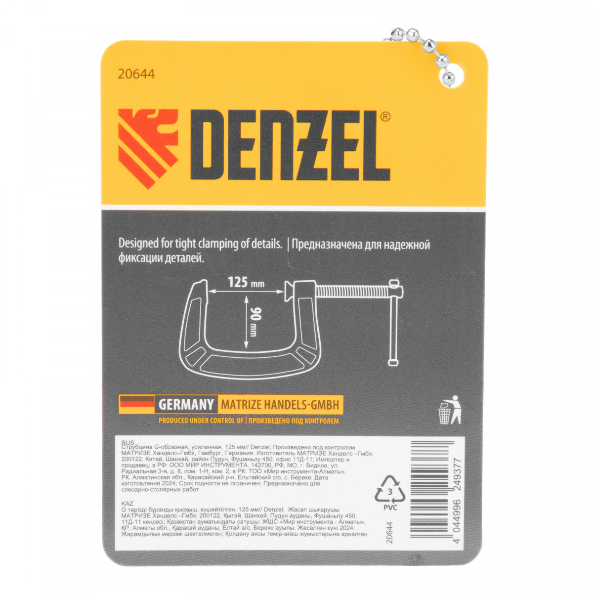 Струбцина G-образная, усиленная, 125 мм Denzel
