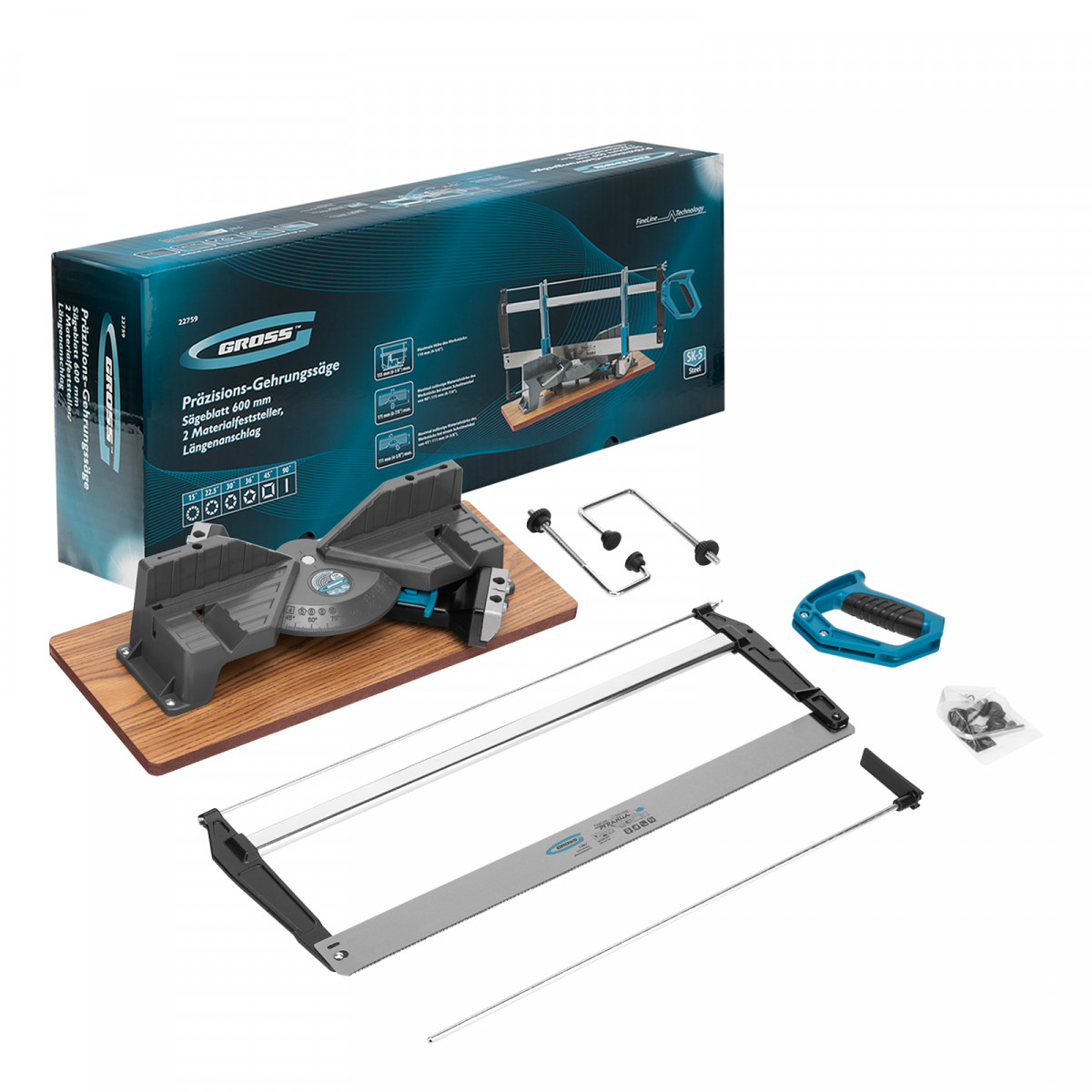 Двухплоскостное прецизионное стусло Gross 22759 с пилой 600 мм, 2 прижимными струбцинами и ограничительным упором позволяет осуществлять распил заготовок в двух плоскостях. Оно обеспечивает высоту распила 165 мм и ширину 175 мм. Рассчитано на профессиональное использование при проведении столярных работ.