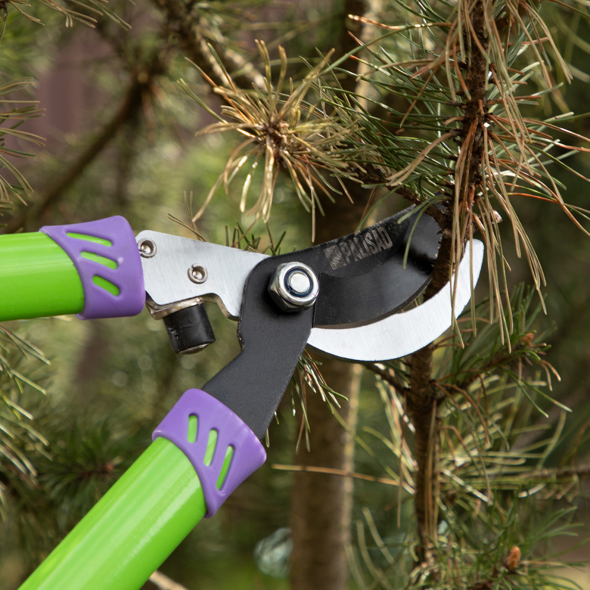 Сучкорез прямого реза Palisad 60506 длиной 700 мм, с двухкомпонентными рукоятками, — инструмент для срезания живых веток толщиной не более 25 мм. Используется для работы двумя руками, удобен для обрезки высоко растущих, а также очень жестких веток. Рабочее лезвие легко срезает ветви благодаря прецизионной заточке и тефлоновому покрытию, которое дополнительно обеспечивает надежную защиту от коррозии. Сучкорез будет полезен для ухода за садом и огородом.