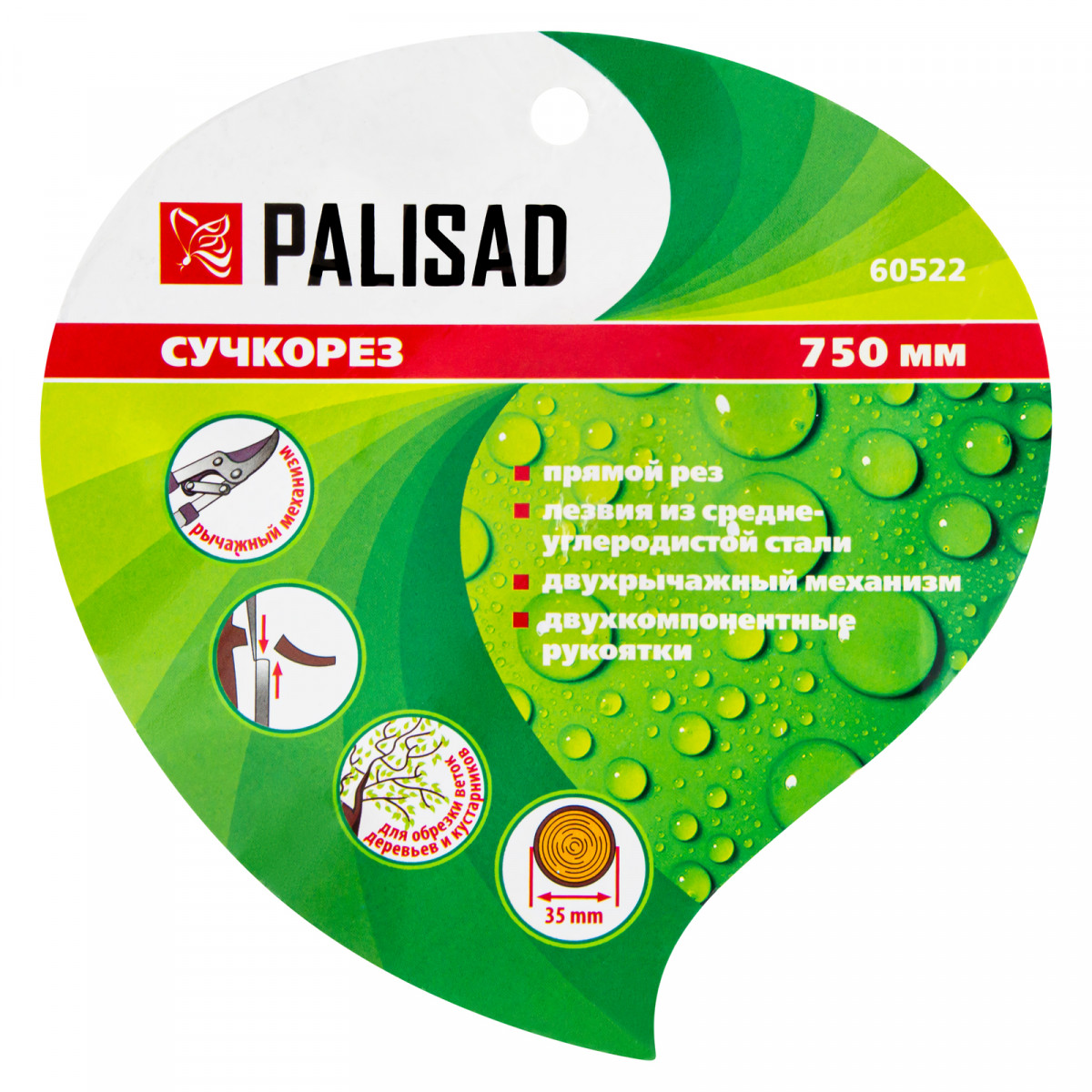 Сучкорез прямого реза Palisad 60522 длиной 750 мм, с двухкомпонентными рукоятками, оснащен двухрычажным механизмом, увеличивающим усилие реза на 20%. Используется для обрезки живых веток толщиной не более 35 мм. Предназначен для работы двумя руками. Успешно справляется с жесткими и высоко растущими ветками. Рабочее лезвие легко срезает ветви благодаря прецизионной заточке и тефлоновому покрытию, которое дополнительно обеспечивает надежную защиту от коррозии. Сучкорез будет полезен для ухода за садом и огородом.