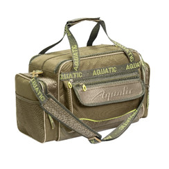 Сумка среднего размера Aquatic для хранения и транспортировки рыболовных принадлежностей изготавливается из полиэстеровых непромокаемых тканей 600D. В сумке имеются 2 объемных боковых кармана и один передний. На переднем кармане расположен узкий карман для ножа, фонаря или другого инструмента. Данная сумка найдет широкое применение в совершенно разных областях.