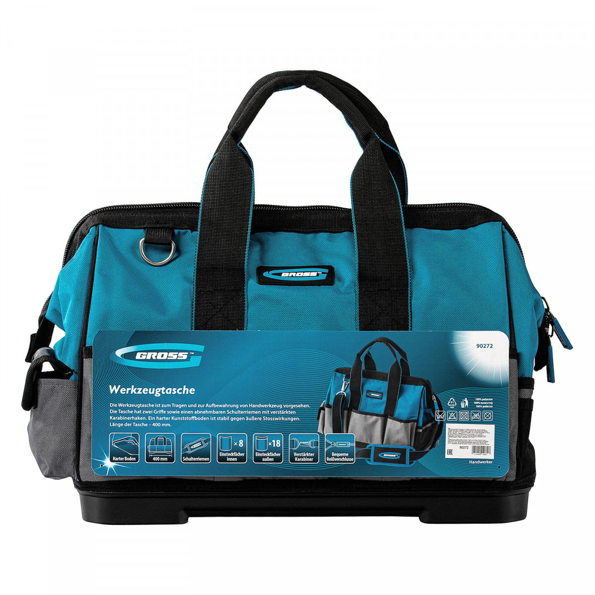 Сумка для инструмента Gross Handwerker 90272 размером 400 х 225 х 310 мм, с 26 карманами, пластиковым дном и наплечным ремнем, будет полезна слесарям, монтажникам, электрикам, а также автомобилистам. В основном отделении, внутренних и внешних карманах поместятся все необходимые инструменты.