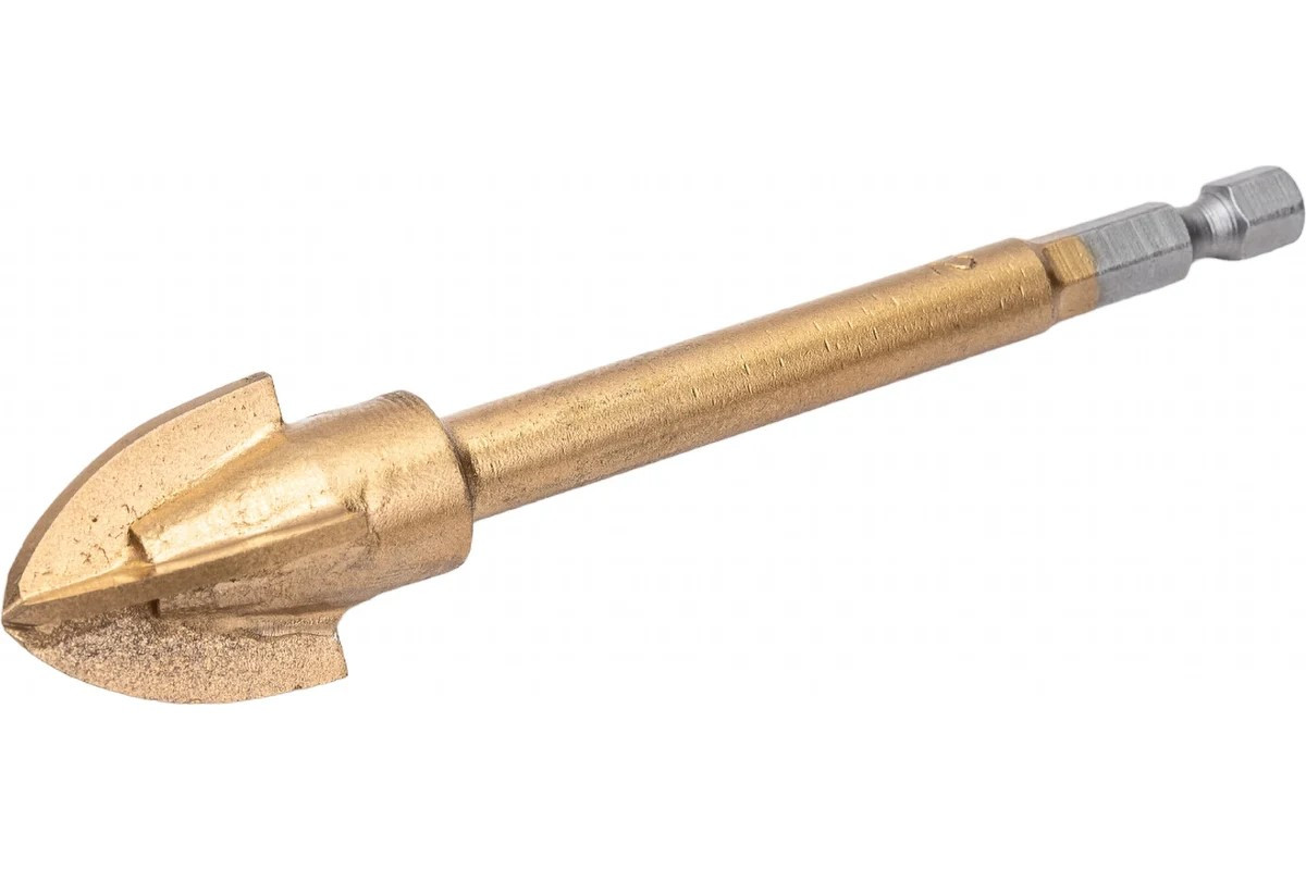 Сверло предназначено для сверления кафельной плитки, керамики, мрамора, стекла и даже керамогранита. Корпус сверла выполнен из инструментальной стали, 4 режущие кромки из твердого сплава. Титановое покрытие сверла обеспечивает дополнительную защиту от перегрева сверла в работе. Хвостовик HEX (шестигранный) под быстросъемный патрон. При работе рекомендуем использовать охлаждающую жидкость для более качественного сверления и долгой службы сверла, применять в безударном режиме.