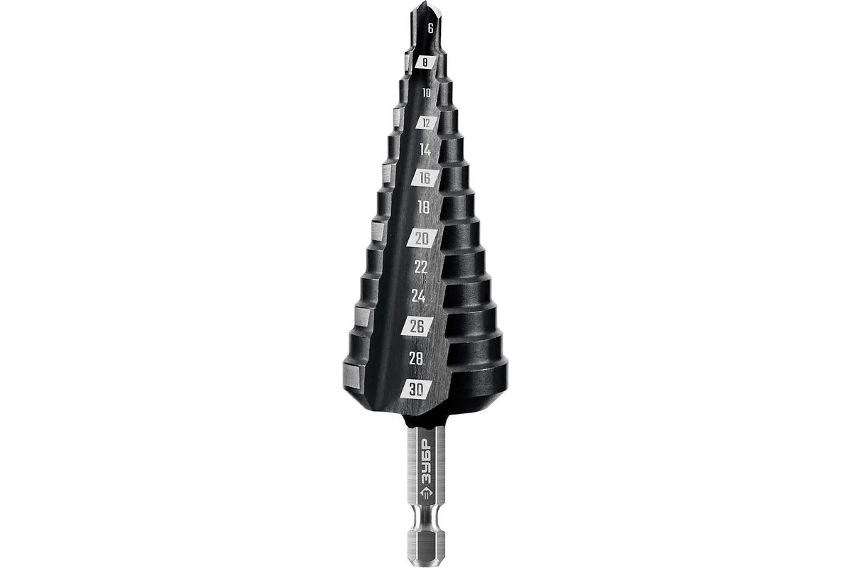 13 ступеней для поэтапного сверления отверстий разного диаметра в различных материалах.