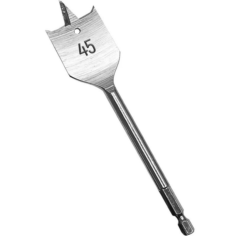 Сверло по дереву перовое Vertextools 1133-45 с шестигранным хвостовиком предназначено для дрелей, шуруповертов. Подходит для работы с древесиной, ДСП, МДФ, фанерой, гипсокартоном. Сверло изготовлено из инструментальной стали, закаленной в рабочей части. Оснащено очерчивающим остриём, что позволяет получить ровное, цельное отверстие. Шестигранный хвостовик обеспечивает надежное закрепление в патроне. Перовое сверло имеет высокий коэффициент производительности и позволяет выполнить отверстия различного диаметра. Для получения наилучшего результата и чтобы продлить период эксплуатации, соблюдайте правила: Начинайте сверлить на малых оборотах дрели постепенно добавляя, но не более 300-450 об/мин. Такой подход позволяет добиться более качественных результатов и сохраняет сверло от деформации. Устанавливайте сверло выдержав угол в 90.