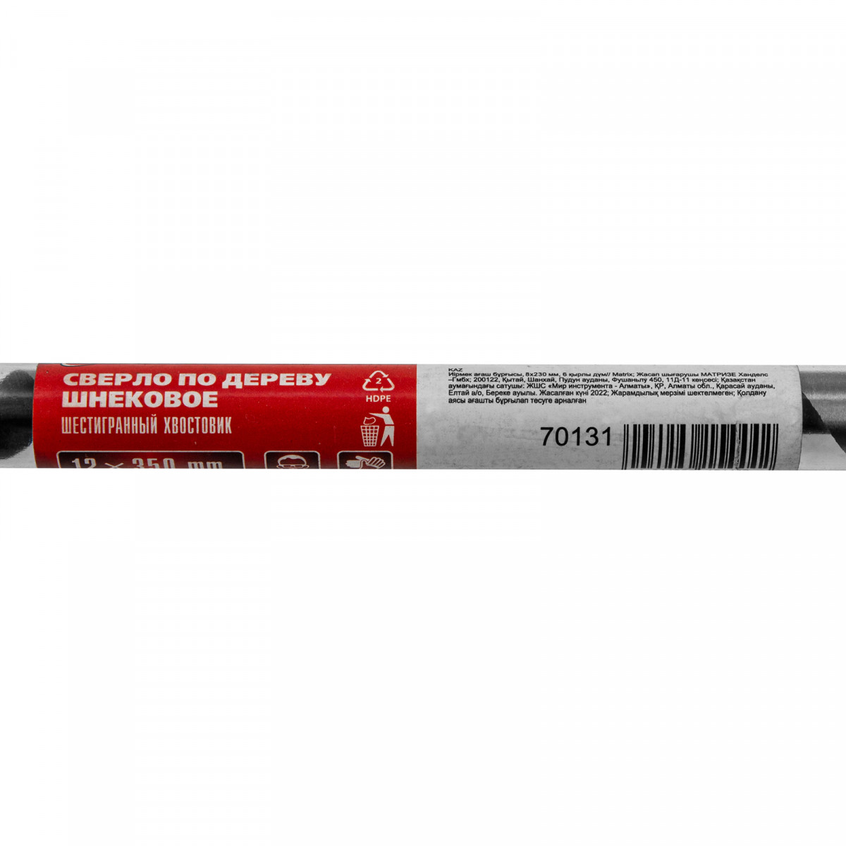Сверло по дереву шнековое, 12 х 350 мм, шестигранный хвостовик Matrix