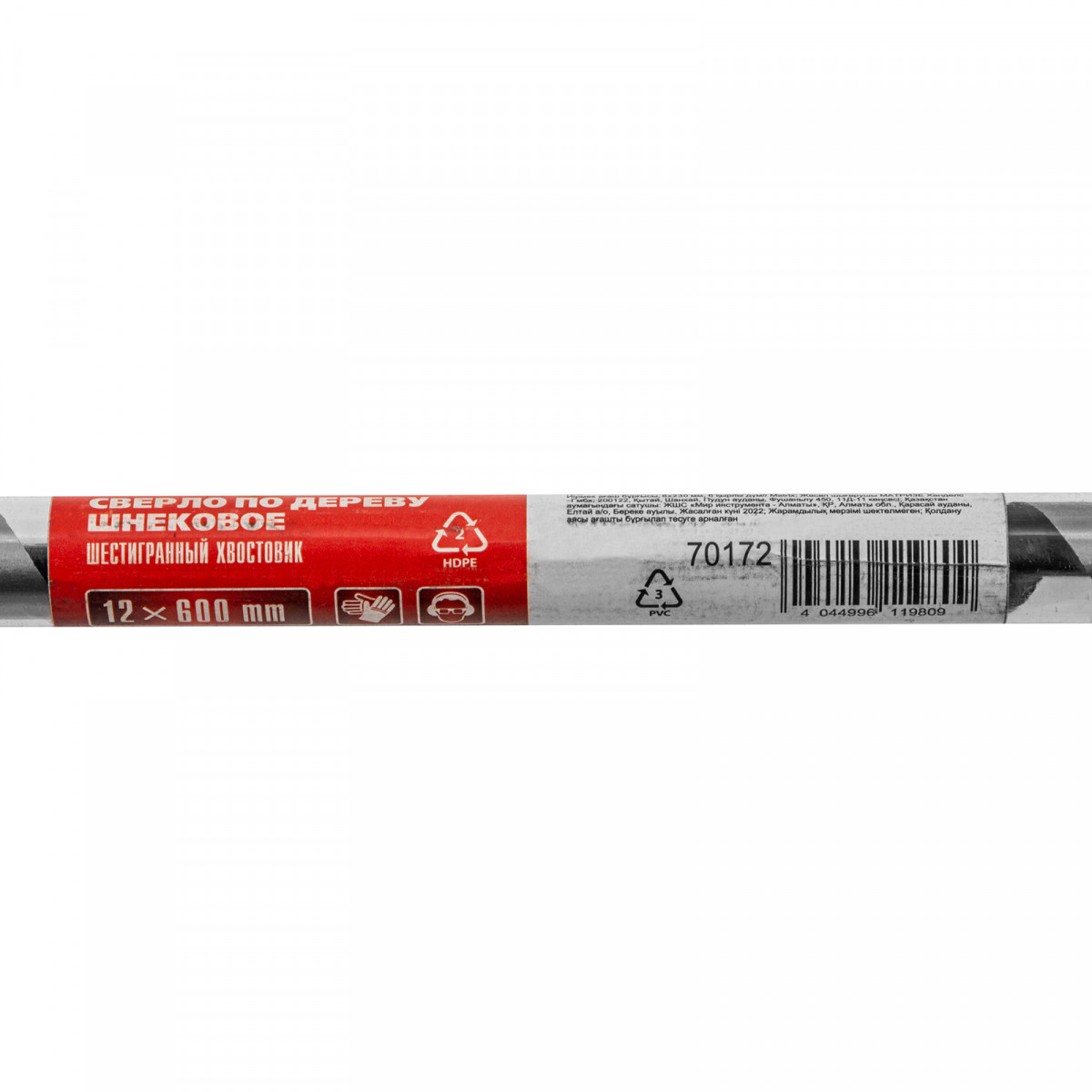Сверло по дереву шнековое, 12 х 600 мм, шестигранный хвостовик Matrix