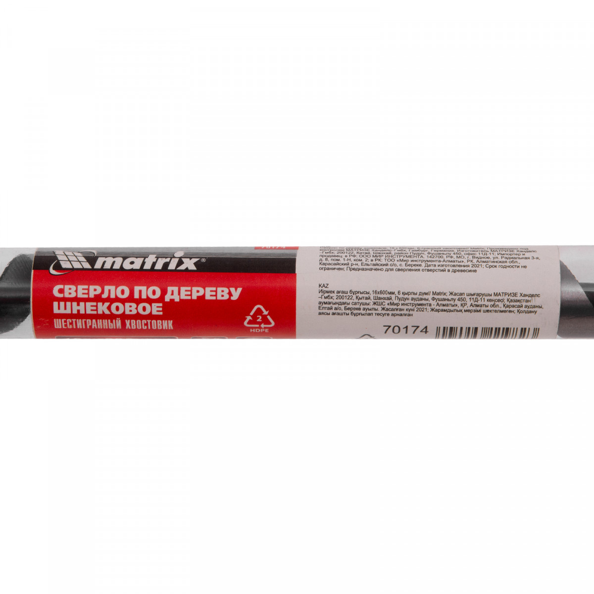 Сверло по дереву шнековое, 16 х 600 мм, шестигранный хвостовик Matrix