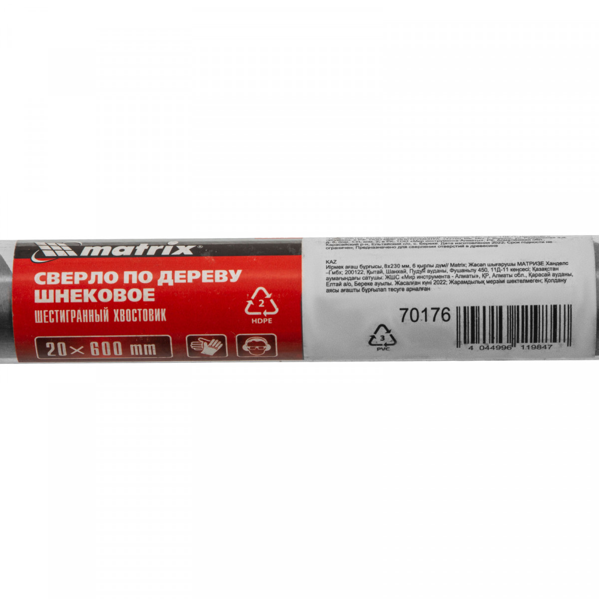 Сверло по дереву шнековое, 20 х 600 мм, шестигранный хвостовик Matrix