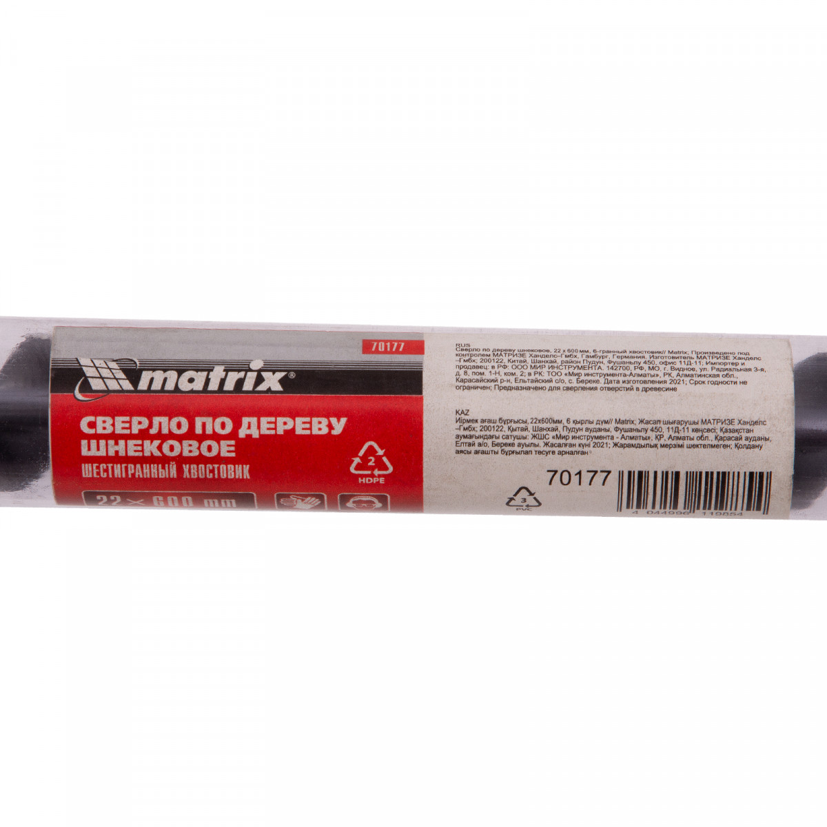 Сверло по дереву шнековое, 22 х 600 мм, шестигранный хвостовик Matrix