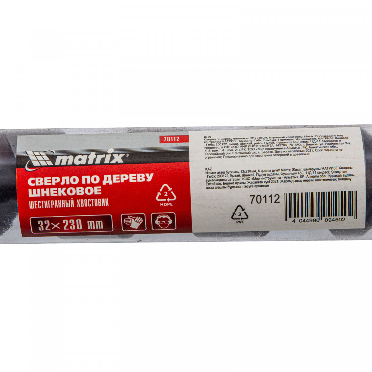 Сверло по дереву шнековое, 32 х 230 мм, шестигранный хвостовик Matrix