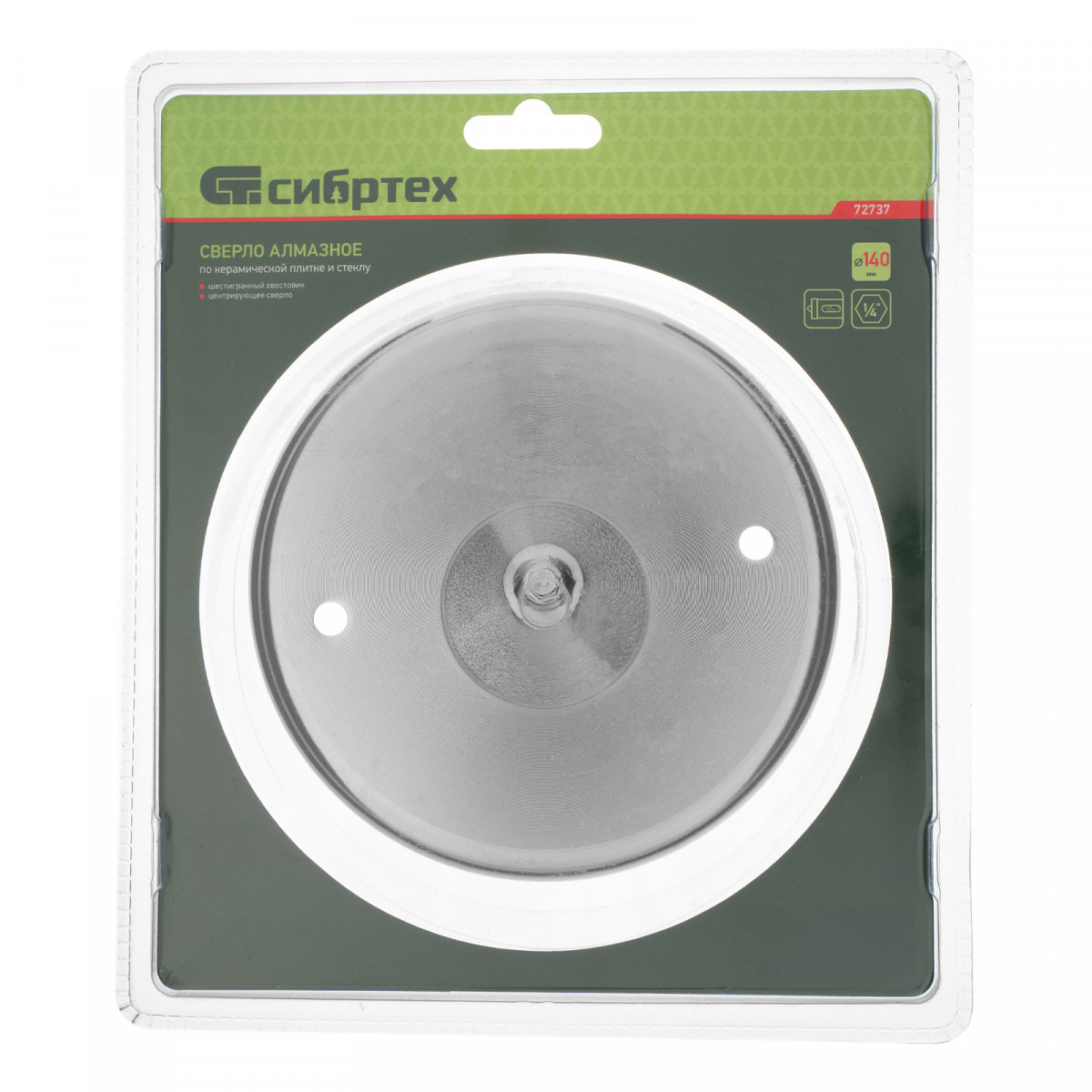 Сверло Сибртех 72737 размером 140 х 55 м, с шестигранным хвостовиком и центрирующим сверлом, позволяет получать отверстия в керамической плитке и стекле. Его устанавливают на дрель или шуруповерт, рекомендуемый диапазон рабочих оборотов 350-700 об/мин. Оснастка используется при выполнении бытовых ремонтных и отделочных работ.