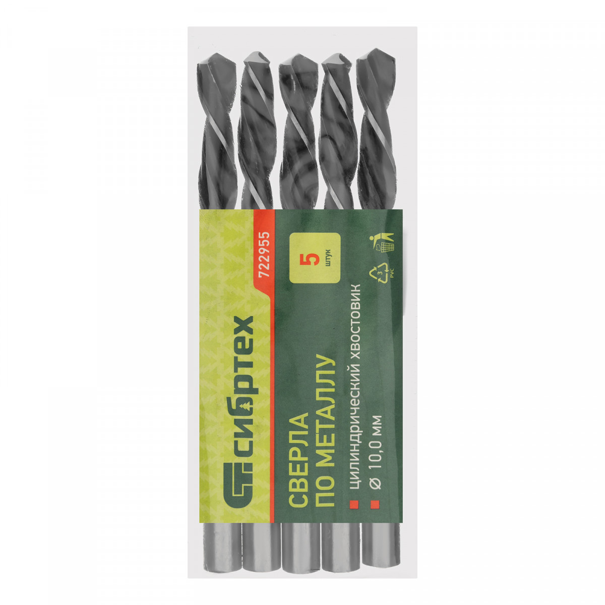 Сверло по металлу Сибртех 722955 из быстрорежущей стали, с цилиндрическим хвостовиком, 5 шт. в упаковке, имеет угол заточки 118° и используется для получения отверстий диаметром 10 мм в цветных и тяжелых металлах. Инструмент применяется в профессиональных и бытовых целях.