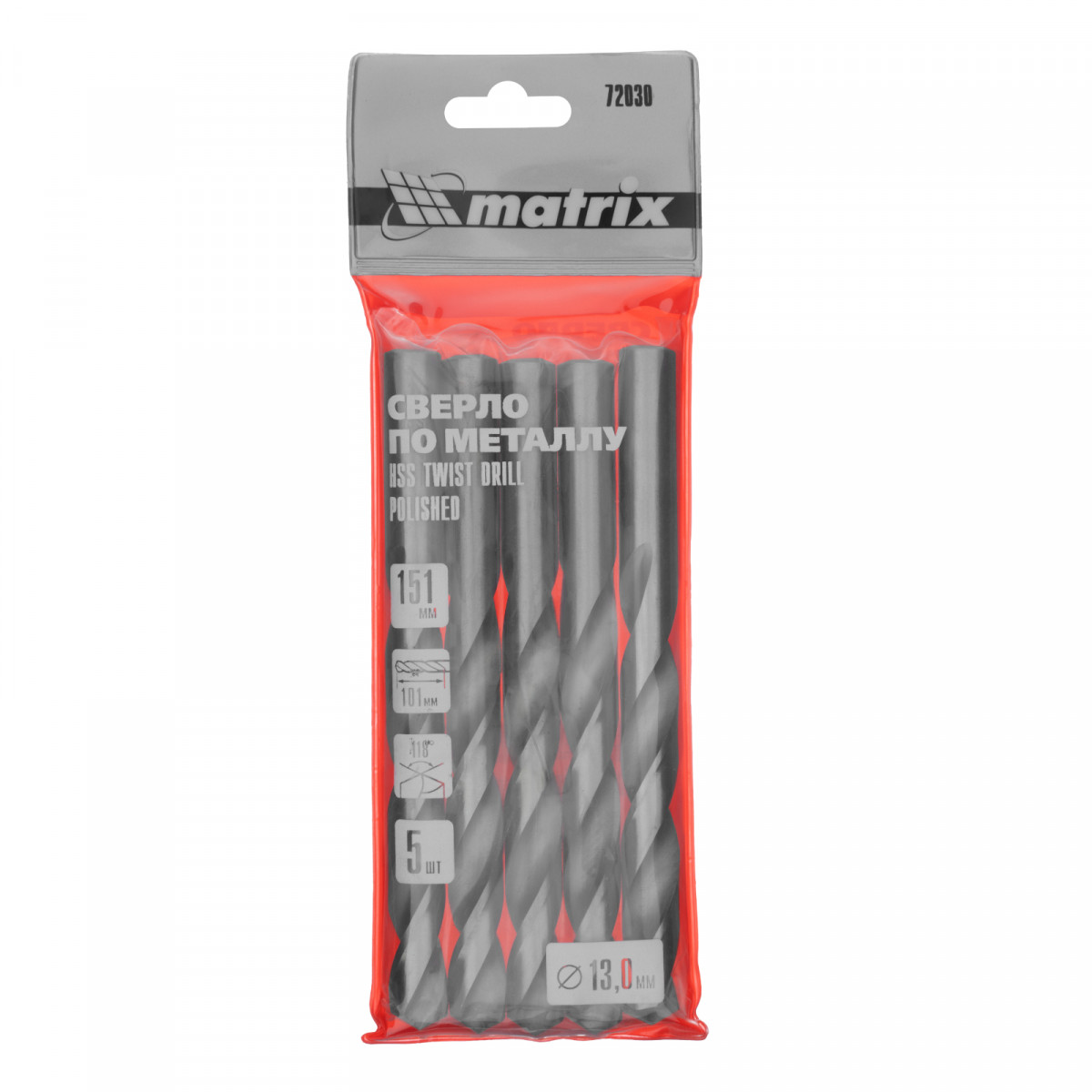 Сверло по металлу, 13 мм, полированное, HSS, 5 шт, цилиндрический хвостовик Matrix
