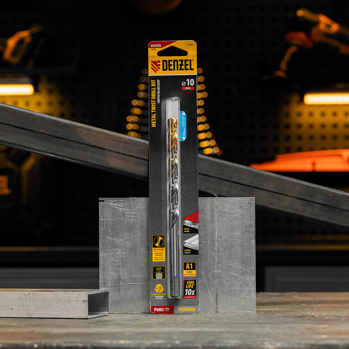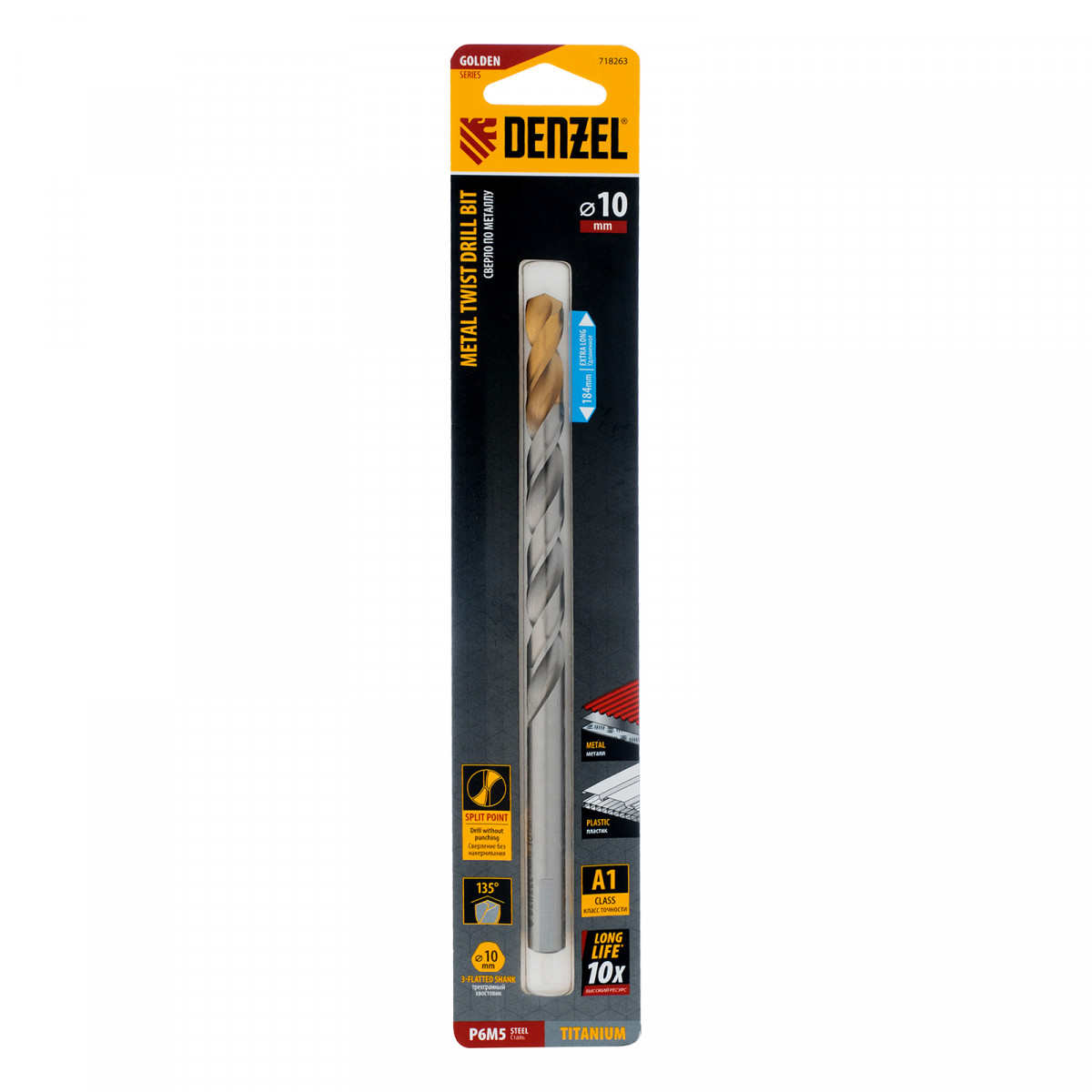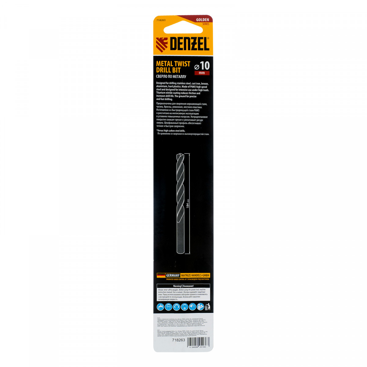Сверло спиральное по металлу 10 х 184 мм, Р6М5, Golden Tip, удлиненное Denzel