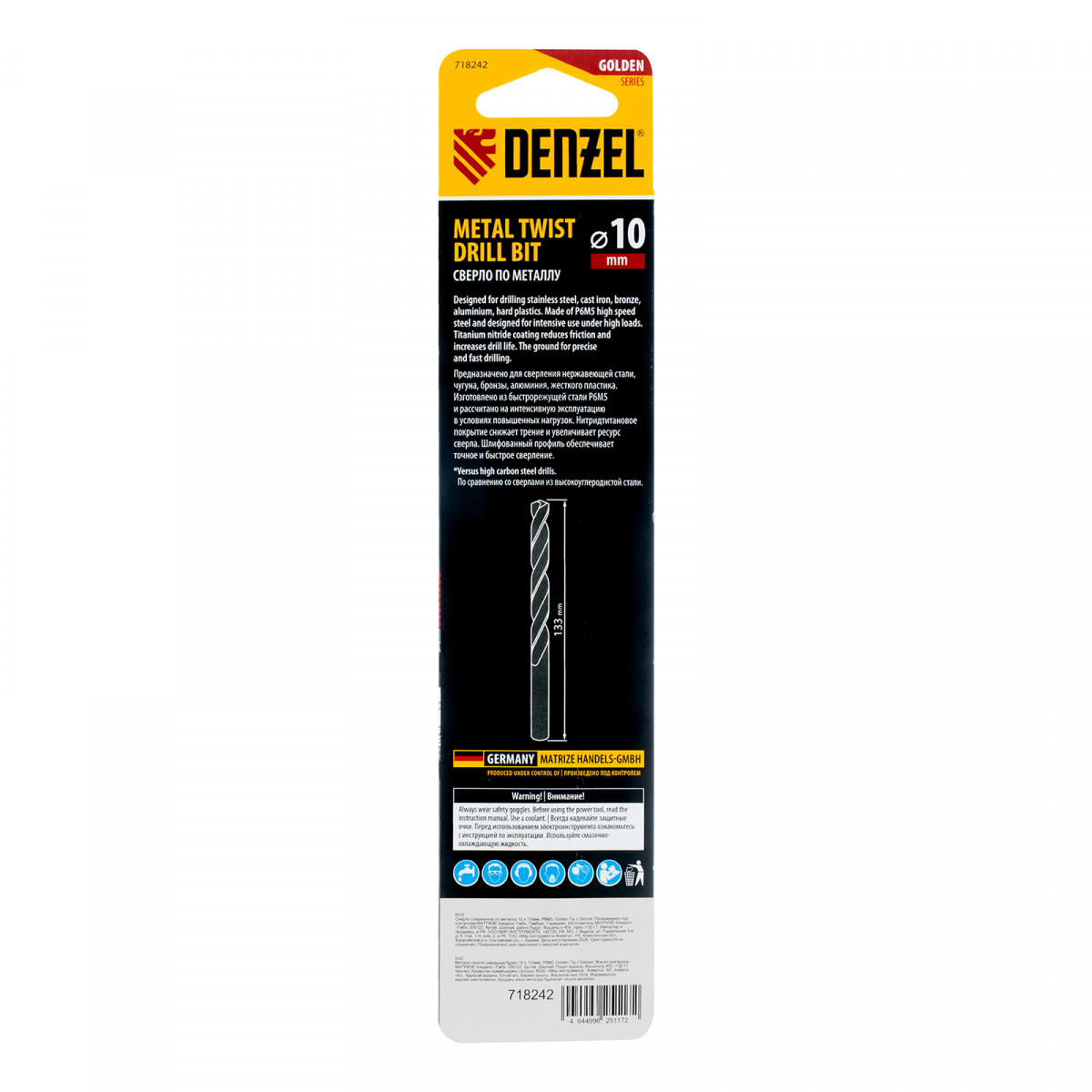 Сверло спиральное по металлу 10 x 133 мм, Р6М5, Golden Tip Denzel