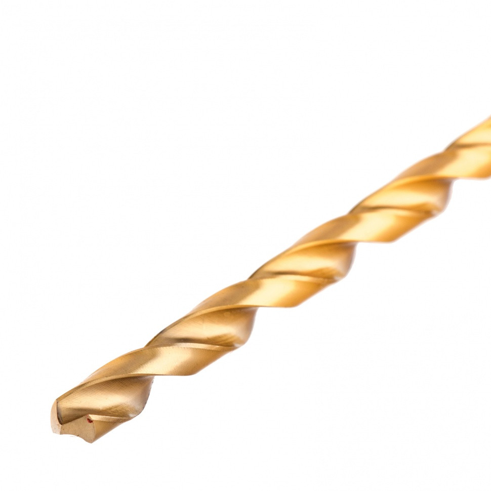- Надежность — сверло изготовлено из универсальной быстрорежущей стали HSS, нитридтитановое покрытие защищает от коррозии и обеспечивает стойкость к перегреву.