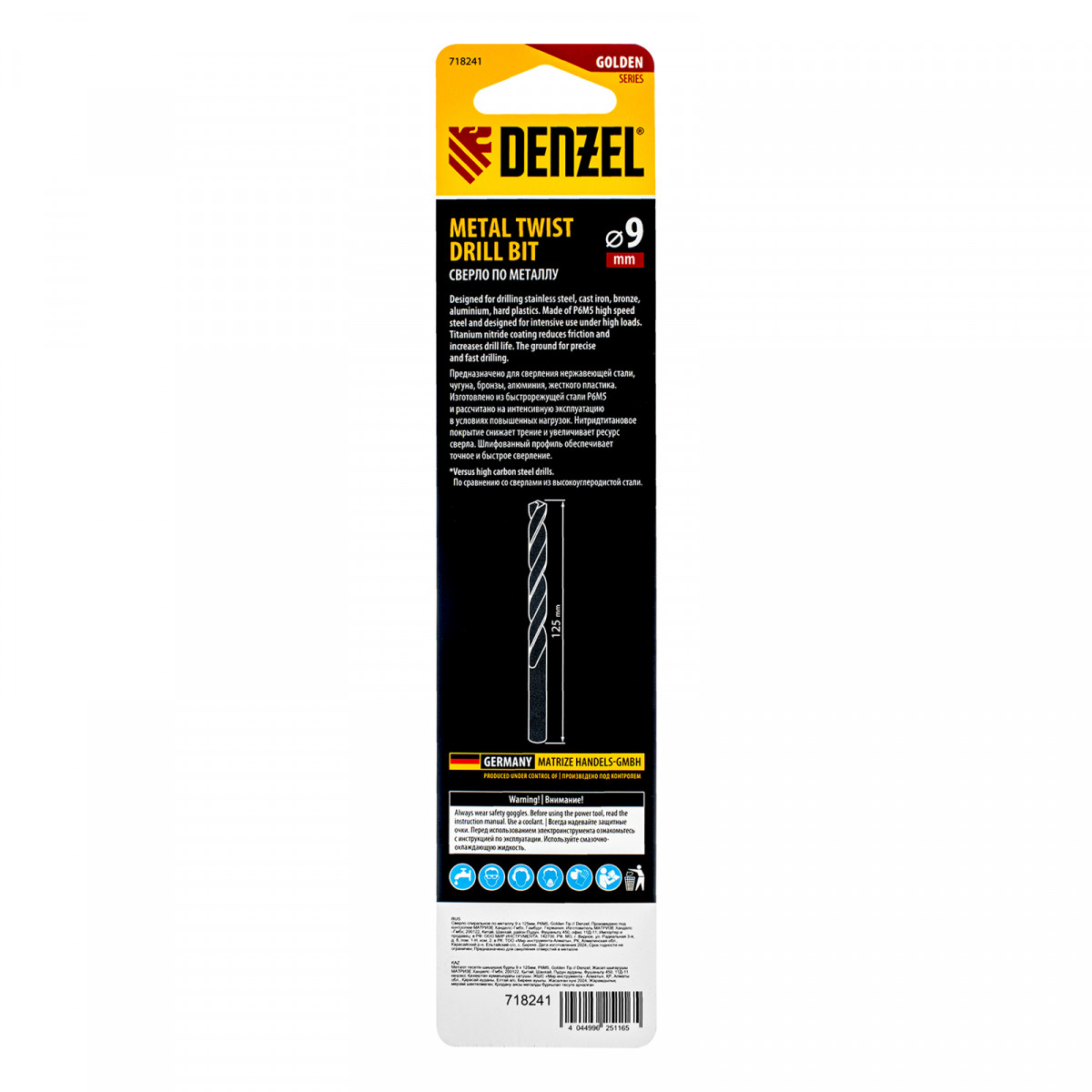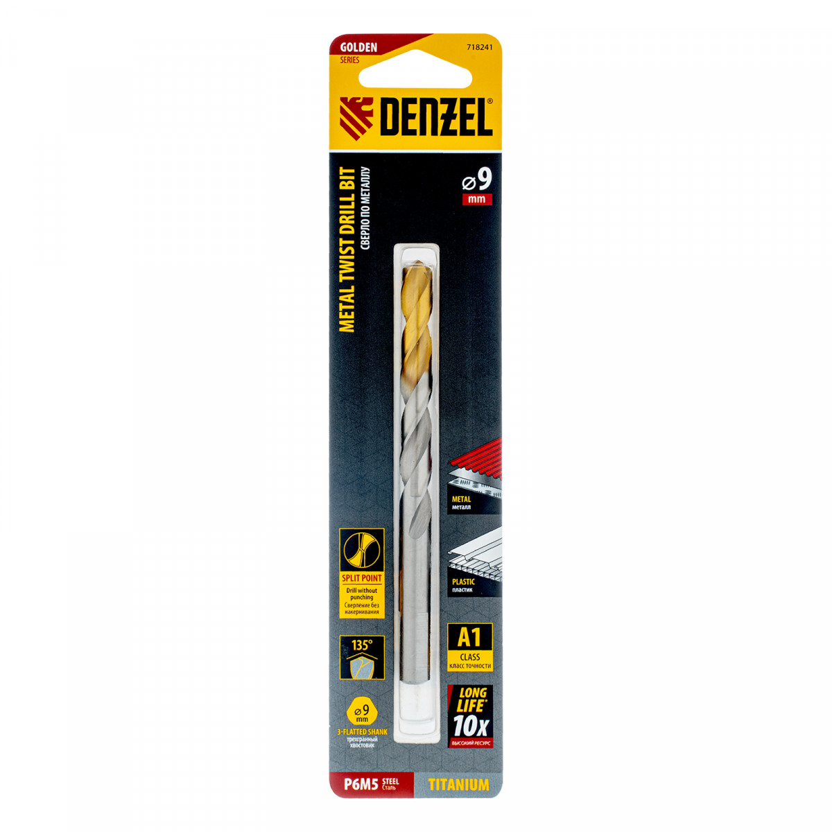 Спиральное сверло по металлу Denzel Golden Tip 718241 из стали P6M5, размером 9 х 125 мм, предназначено для получения отверстий в легированных и цветных металлах — меди, алюминии, мягкой бронзе, титане, латуни. Оснастка позволяет эффективно справляться с поставленными задачами благодаря оптимальному углу заточки 135°. Класс точности A гарантирует высокое качество полученных отверстий. Сверло используется для проведения монтажно-сборочных работ.