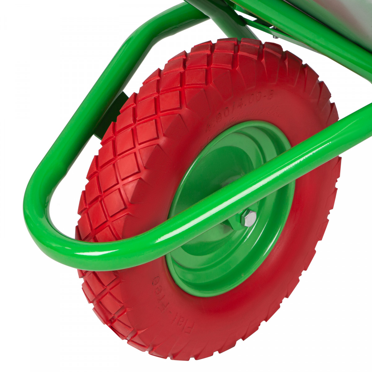 • Хорошая проходимость — колесо с 2 шариковыми подшипниками легко вращается, позволяя перемещать тачку по неровной поверхности.