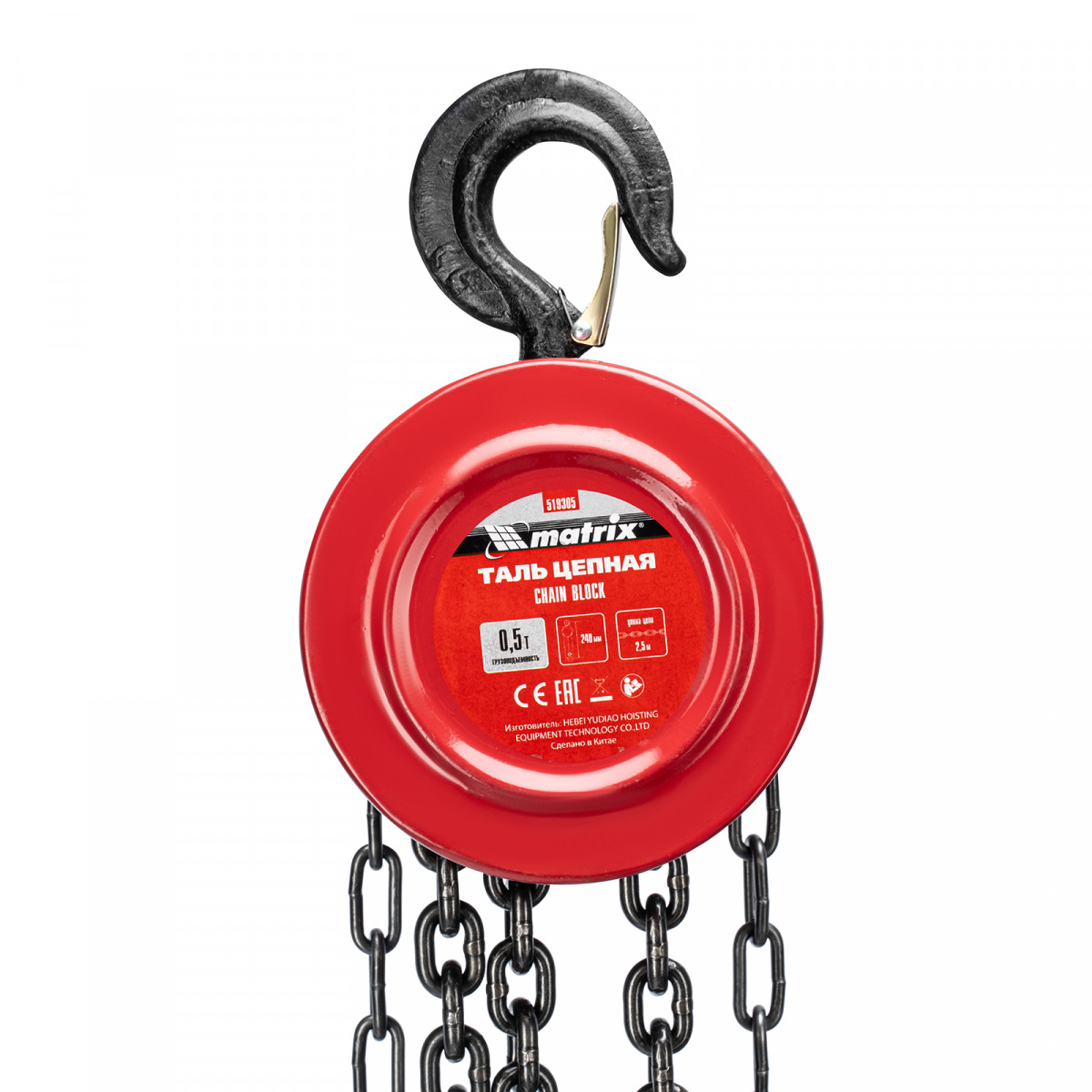 Таль цепная, 0.5 т, H подъема 2.5 м, расстояние между крюками 240 мм Matrix